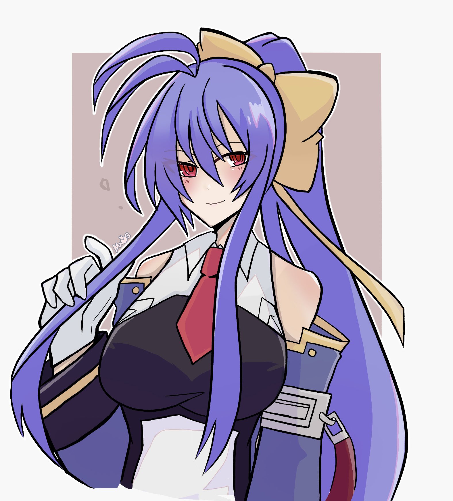 &{ID:13746834 CreatedAt:Sat Mar 28 20:30:13 -0500 2026 Score:0 Width:1576 Height:1744 MD5:7d6a15ee56acac386ca8e505ad9993d3 Directory:7d/6a Image:7d6a15ee56acac386ca8e505ad9993d3.jpg Rating:general Source:https://x.com/mutuki78/status/2037970265163104509 Change:1774747813 Owner:danbooru CreatorID:6498 ParentID:0 Sample:1 PreviewHeight:350 PreviewWidth:316 Tags:1girl antenna_hair artist_logo blazblue blazblue_remix_heart blue_hair blush border bow breasts brown_background closed_mouth commentary_request detached_sleeves gloves grey_border hair_between_eyes hair_bow high_ponytail highres large_breasts light_smile logo long_sidelocks looking_at_viewer mai_natsume mutuki78 necktie playing_with_own_hair ponytail red_eyes red_necktie short_necktie sidelocks simple_background solo upper_body white_gloves yellow_bow Title: HasNotes:false HasComments:false FileURL:https://img2.gelbooru.com/images/7d/6a/7d6a15ee56acac386ca8e505ad9993d3.jpg PreviewURL:https://gelbooru.com/thumbnails/7d/6a/thumbnail_7d6a15ee56acac386ca8e505ad9993d3.jpg SampleURL:https://img2.gelbooru.com/samples/7d/6a/sample_7d6a15ee56acac386ca8e505ad9993d3.jpg SampleHeight:941 SampleWidth:850 Status:active PostLocked:0 HasChildren:false IsVideo:false DisplayDate:28.03.2026 20:30}