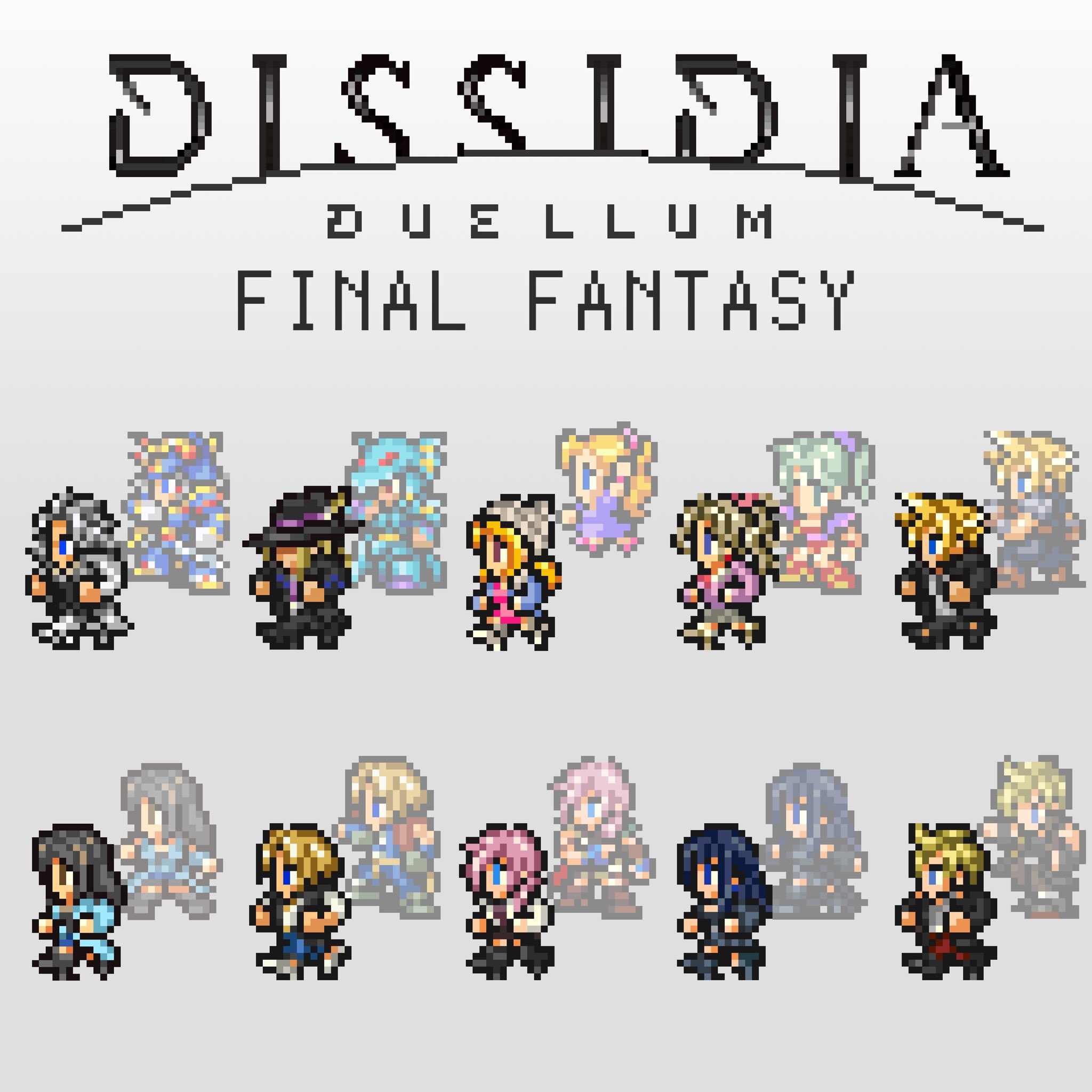 5boys 5girls animal_hat black_coat black_hair black_hat black_vest blonde_hair blue_coat blue_eyes brown_eyes cain_highwind cat_hat cloud_strife cloud_strife_(urban_wolf) coat commentary_request copyright_name dissidia_duellum_final_fantasy dissidia_final_fantasy dress fedora final_fantasy final_fantasy_i final_fantasy_iv final_fantasy_ix final_fantasy_v final_fantasy_vi final_fantasy_vii final_fantasy_viii final_fantasy_xiii final_fantasy_xiv final_fantasy_xv gaia_(artemis_gothic_dress)_(ff14) gaia_(ff14) grey_background grey_hair grey_shirt hat hat_feather hat_over_eyes highres in-franchise_crossover jacket kain_highwind_(casual_dragoon) krile_mayer_baldesion_(ff5) krile_mayer_baldesion_(out_and_about)_(ff5) lightning_farron lightning_farron_(modern_jacket) long_coat long_hair mashimaro_doter multiple_boys multiple_girls official_alternate_costume pants pink_dress pink_hair pink_sweater pixel_art ponytail prompto_argentum prompto_argentum_(friendly_photographer) red_pants rinoa_heartilly rinoa_heartilly_(student_sorceress) shirt short_hair spiked_hair sprite_art sweater terra_branford_(school_cardigan) tina_branford vest warrior_of_light_(ff1) warrior_of_light_(twilight_overcoat)_(ff1) white_jacket zidane_tribal zidane_tribal_(vacationing_thief)
