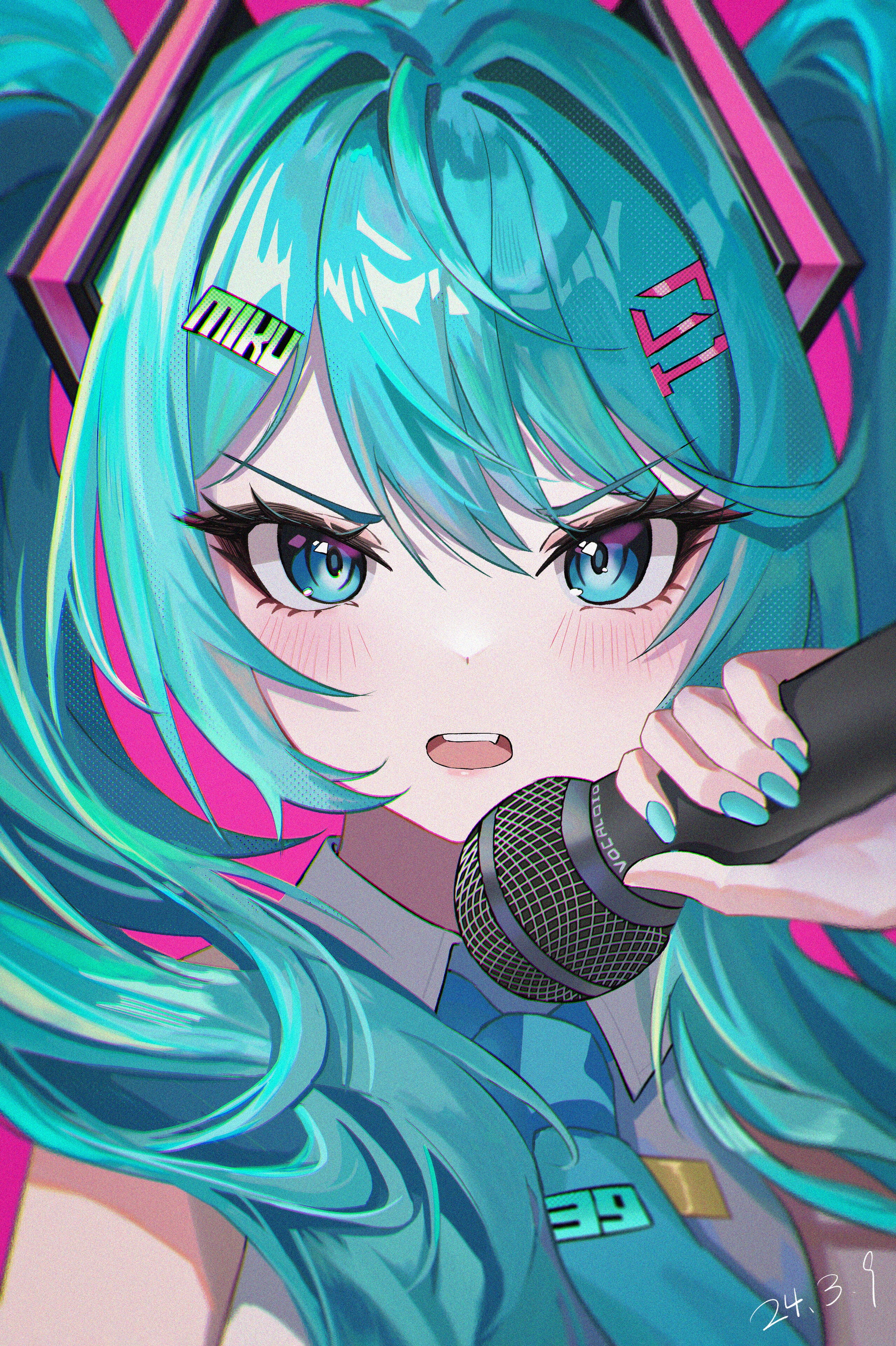 &{ID:13751287 CreatedAt:Sun Mar 29 12:00:43 -0500 2026 Score:3 Width:2557 Height:3840 MD5:7ba65ed6d8d0cadf158eef793e4728aa Directory:7b/a6 Image:7ba65ed6d8d0cadf158eef793e4728aa.jpg Rating:general Source:https://www.pixiv.net/artworks/116754733 Change:1774803644 Owner:danbooru CreatorID:6498 ParentID:0 Sample:1 PreviewHeight:350 PreviewWidth:233 Tags:1girl 39 absurdres aqua_eyes aqua_hair aqua_nails aqua_necktie astelia collared_shirt commentary_request fingernails hair_between_eyes hair_ornament hatsune_miku highres holding holding_microphone long_hair looking_at_viewer microphone miku_day nail_polish necktie number_hair_ornament open_mouth pink_background portrait shirt vocaloid white_shirt Title: HasNotes:false HasComments:false FileURL:https://img2.gelbooru.com/images/7b/a6/7ba65ed6d8d0cadf158eef793e4728aa.jpg PreviewURL:https://gelbooru.com/thumbnails/7b/a6/thumbnail_7ba65ed6d8d0cadf158eef793e4728aa.jpg SampleURL:https://img2.gelbooru.com/samples/7b/a6/sample_7ba65ed6d8d0cadf158eef793e4728aa.jpg SampleHeight:1276 SampleWidth:850 Status:active PostLocked:0 HasChildren:false IsVideo:false DisplayDate:29.03.2026 12:00}