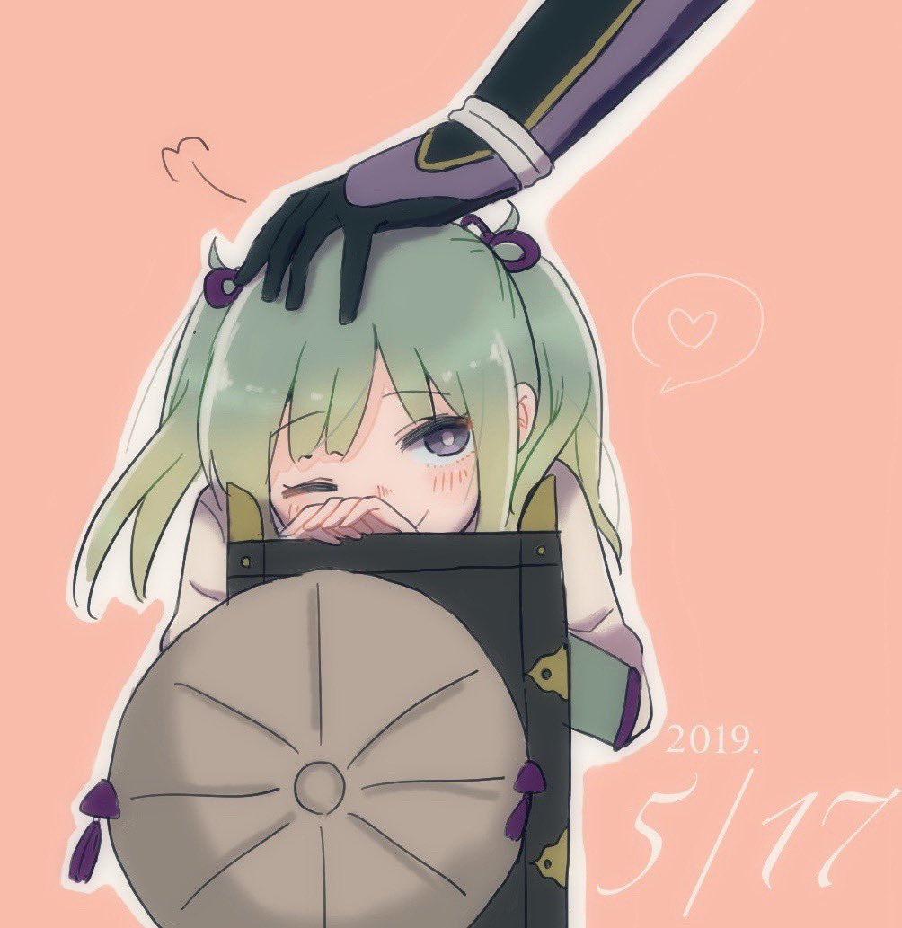 1boy 1girl black_gloves dated father_and_child father_and_daughter fire_emblem fire_emblem_fates gloves green_hair grey_eyes headpat heart kaze_(fire_emblem) looking_at_viewer midori_(fire_emblem) nintendo parent_and_child smile solo_focus spoken_heart twintails twqk6