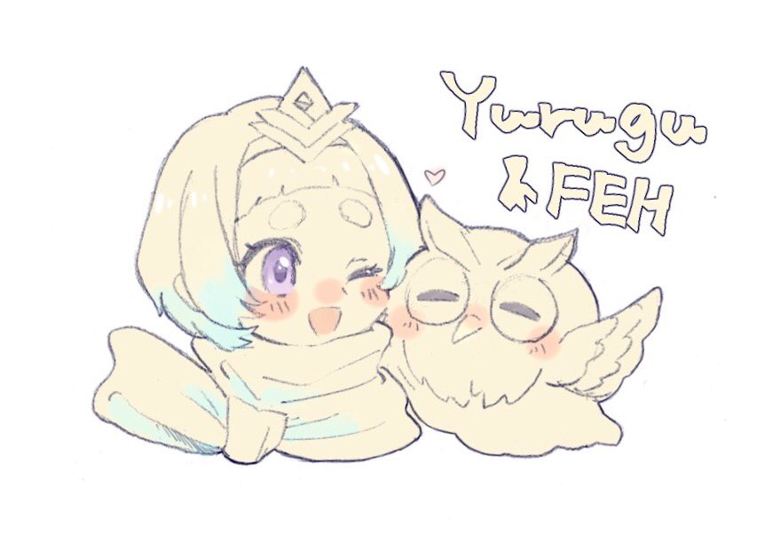 1girl beak bird blue_hair character_name feh_(fire_emblem_heroes) fire_emblem fire_emblem_heroes gradient_hair multicolored_hair nintendo one_eye_closed open_mouth owl purple_eyes short_hair smile solo tiara twqk6 white_hair ylgr_(fire_emblem)