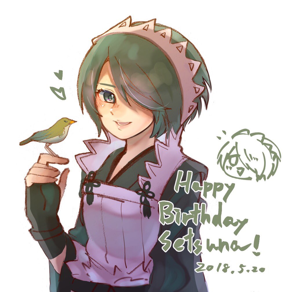 1girl bird bird_on_hand birthday blue_eyes blue_hair character_name dated fire_emblem fire_emblem_fates hair_over_one_eye happy_birthday japanese_clothes looking_at_viewer nintendo setsuna_(fire_emblem) short_hair smile solo twqk6