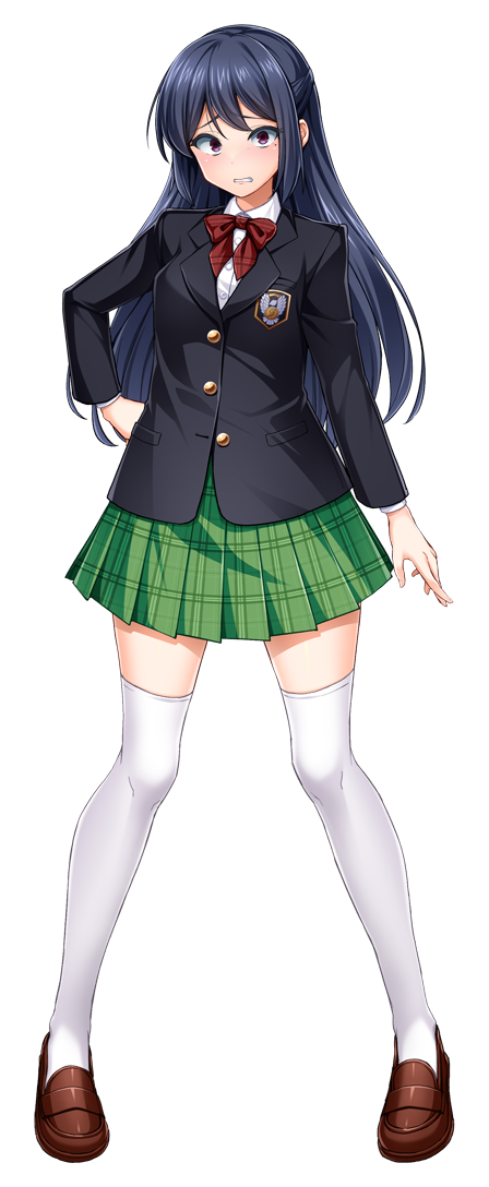 1girl black_hair black_jacket blazer blue_hair blush bow bowtie calpish clenched_teeth collared_shirt emblem frown full_body furrowed_brow game_cg green_skirt grimace hand_on_own_hip jacket large_variant_set loafers long_hair long_sleeves looking_at_viewer mahou_reiki_magisphere miniskirt non-web_source official_art parted_lips plaid_bow plaid_clothes plaid_skirt pleated_skirt purple_eyes red_bow red_bowtie red_eyes ruri_(magisphere) school_emblem school_uniform self-datamine shirt shoes simple_background skirt solo standing striped_bow tachi-e teeth thighhighs transparent_background variant_set white_shirt white_thighhighs zettai_ryouiki