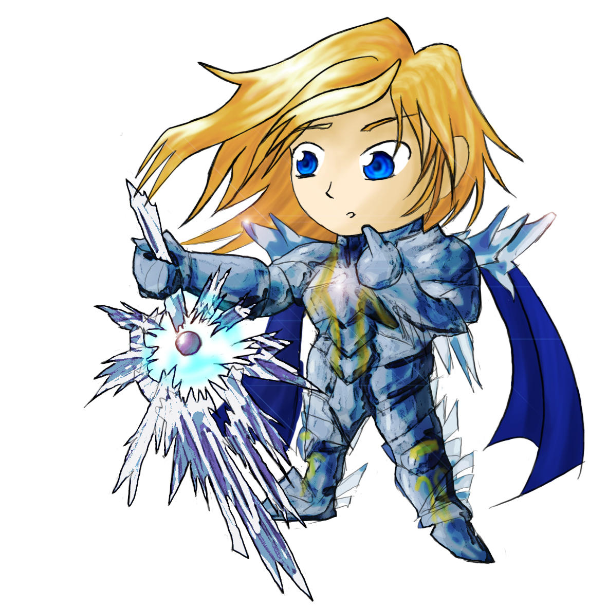1boy armor armored_boots blonde_hair blue_cape blue_eyes boots cape chibi colored_pencil_(medium) commentary crystal crystal_armor crystal_sword english_commentary full_body gauntlets greatsword holding holding_sword holding_weapon long_hair looking_at_object male_focus pointing pointing_at_self raised_eyebrow rodrigotakehara shoulder_armor siegfried_schtauffen soul_calibur soul_calibur_(crystal_greatsword) soulcalibur soulcalibur_iv standing sword traditional_media weapon white_background wind