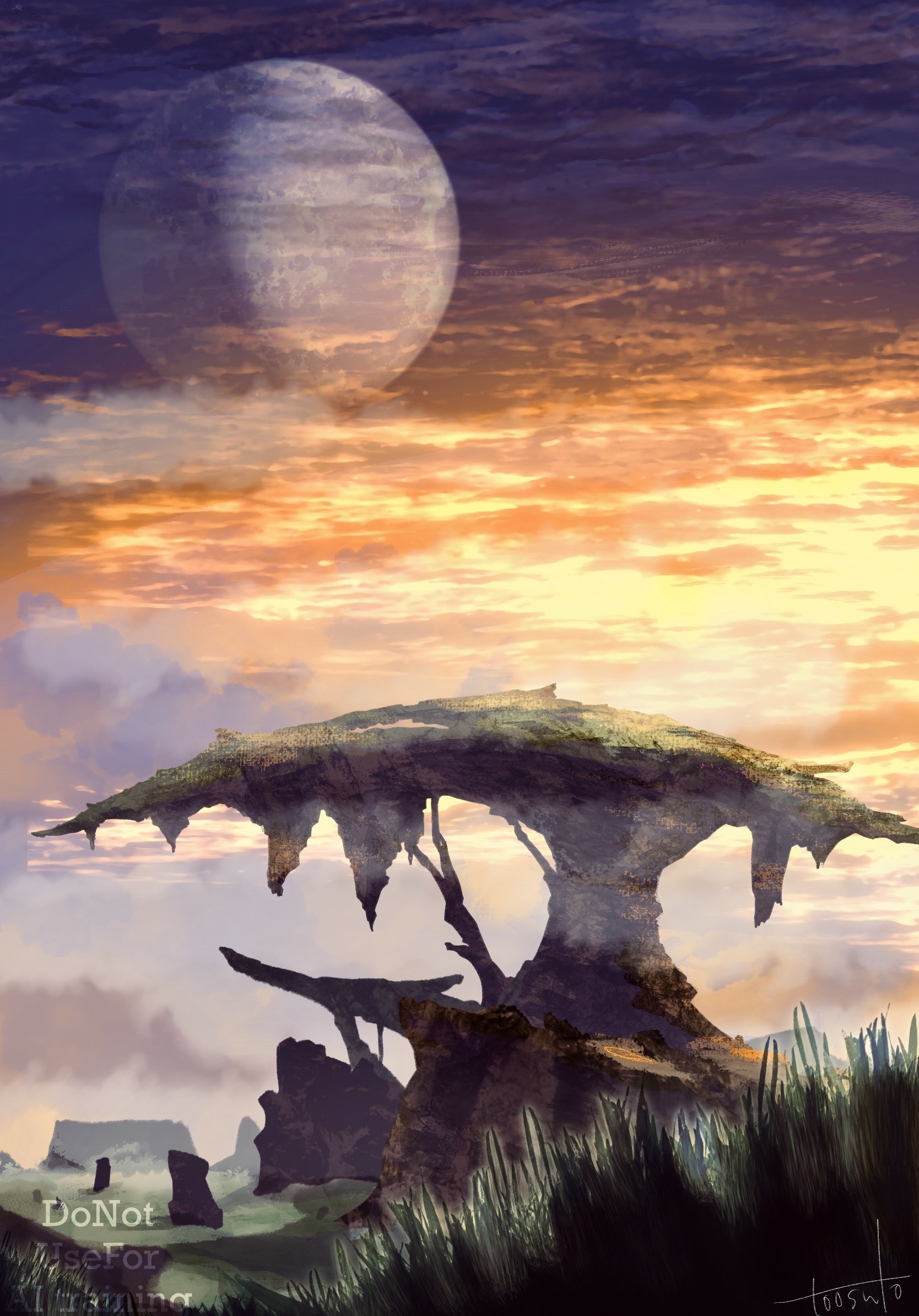 artist_name cloud dawn full_moon grass highres in-universe_location landscape moon no_humans primordia_(xenoblade_x) scenery signature toosut0 watermark xenoblade_chronicles_(series) xenoblade_chronicles_x