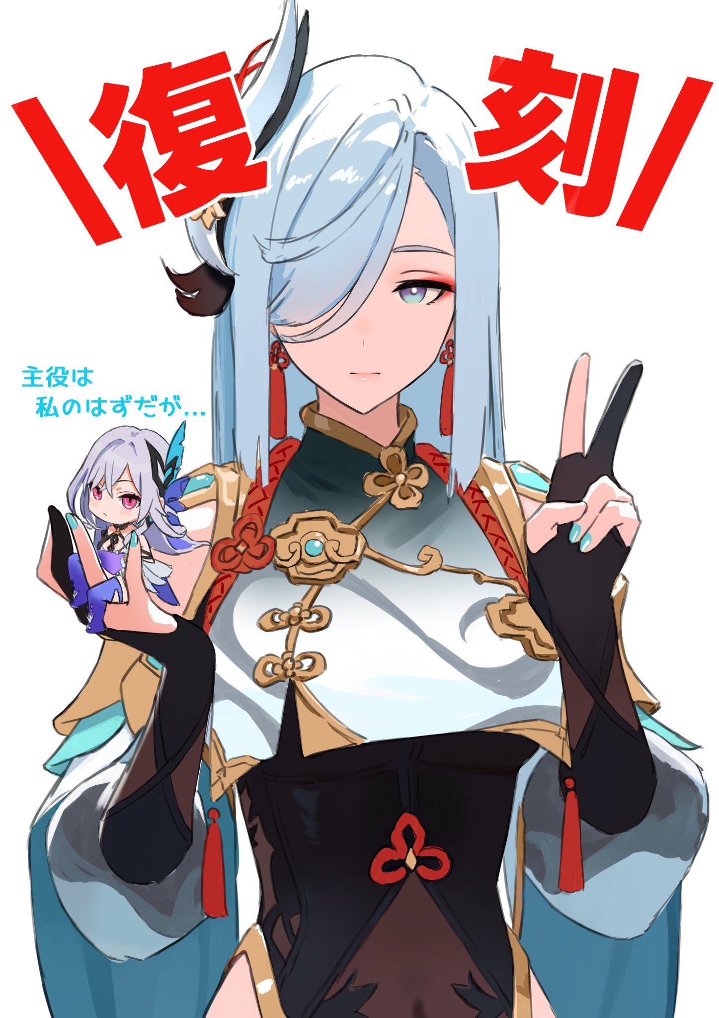 &{ID:13758564 CreatedAt:Mon Mar 30 16:45:11 -0500 2026 Score:1 Width:1447 Height:2047 MD5:0d883250734a47494db18e03eaa15980 Directory:0d/88 Image:0d883250734a47494db18e03eaa15980.jpg Rating:general Source:https://x.com/yumeto_no/status/1932442959674503282 Change:1774907111 Owner:danbooru CreatorID:6498 ParentID:0 Sample:1 PreviewHeight:350 PreviewWidth:247 Tags:2girls black_bodysuit blue_eyes blue_nails bodysuit chinese_clothes chinese_knot clothing_cutout commentary_request earrings expressionless eyeshadow fingernails genshin_impact gloves gradient_eyes grey_eyes grey_hair hair_over_one_eye hands_up highres hip_vent holding holding_mini_person jewelry long_hair looking_at_viewer makeup mini_person minigirl multicolored_eyes multiple_girls one_eye_covered partially_fingerless_gloves partially_translated red_eyeshadow red_rope rope shenhe_(genshin_impact) simple_background single_breast_curtain size_difference skirk_(genshin_impact) solo_focus straight-on tassel tassel_earrings translation_request upper_body v white_background yumeto_(ym-1) Title: HasNotes:true HasComments:false FileURL:https://img2.gelbooru.com/images/0d/88/0d883250734a47494db18e03eaa15980.jpg PreviewURL:https://gelbooru.com/thumbnails/0d/88/thumbnail_0d883250734a47494db18e03eaa15980.jpg SampleURL:https://img2.gelbooru.com/samples/0d/88/sample_0d883250734a47494db18e03eaa15980.jpg SampleHeight:1202 SampleWidth:850 Status:active PostLocked:0 HasChildren:false IsVideo:false DisplayDate:30.03.2026 16:45}