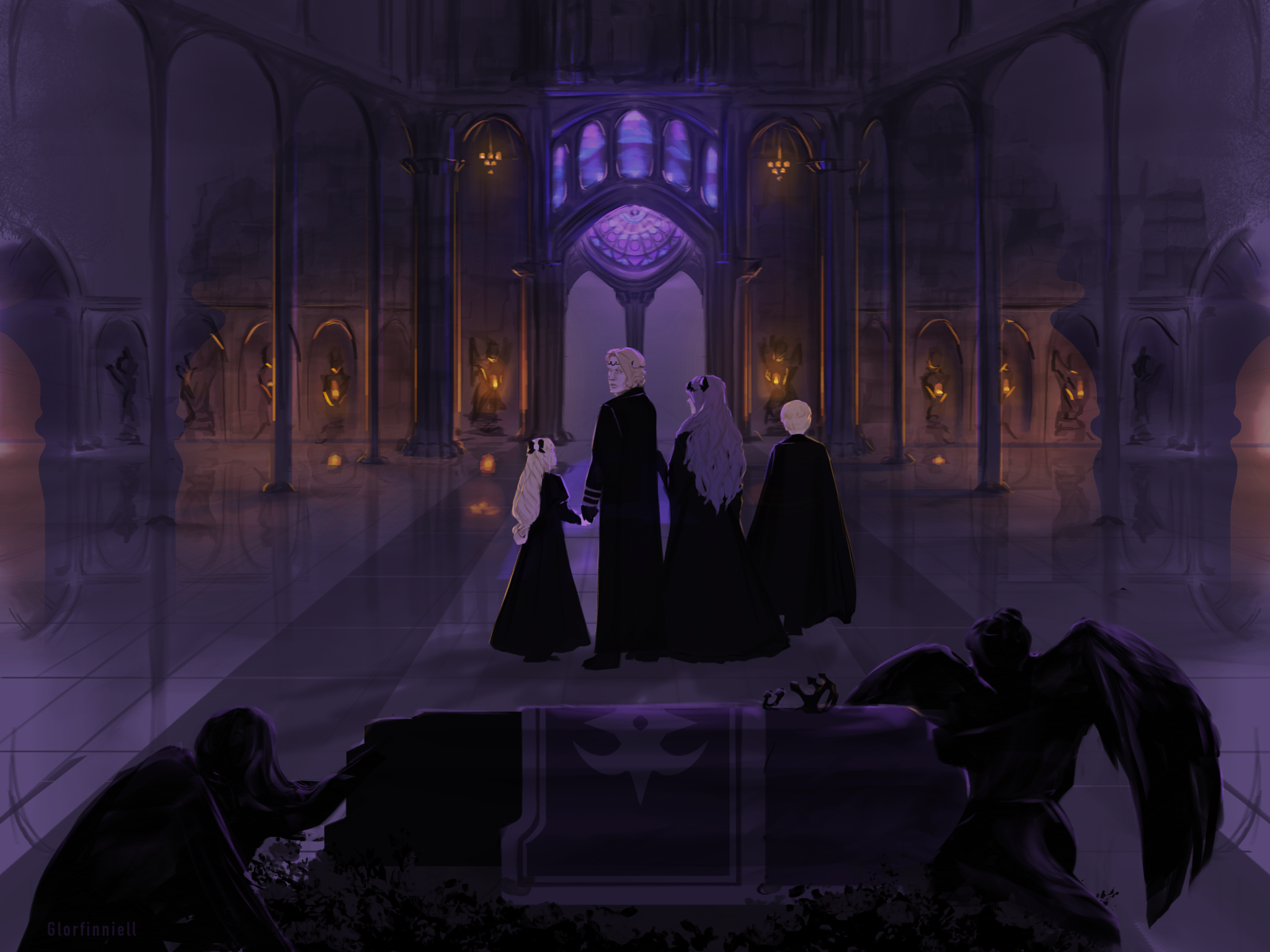 2boys 2girls alternate_costume blonde_hair camilla_(fire_emblem) coffin elise_(fire_emblem) fire_emblem fire_emblem_fates funeral glorfinniell highres holding_hands indoors leo_(fire_emblem_fates) multiple_boys multiple_girls nintendo pillar purple_hair siblings xander_(fire_emblem)
