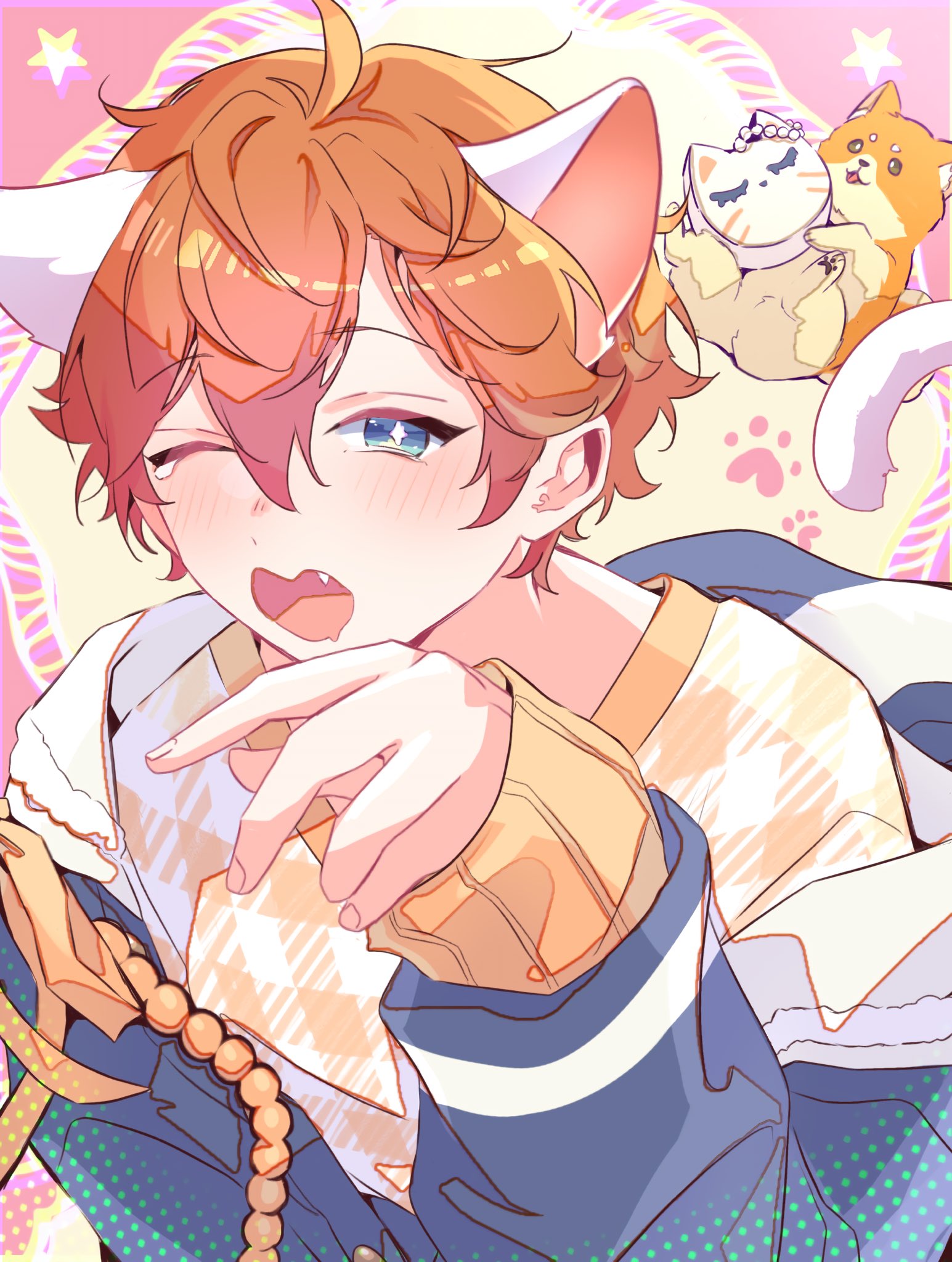 &{ID:13760112 CreatedAt:Mon Mar 30 22:30:29 -0500 2026 Score:0 Width:1545 Height:2048 MD5:74c3283515fb0b90fb7a67c10df56fed Directory:74/c3 Image:74c3283515fb0b90fb7a67c10df56fed.jpg Rating:general Source:https://x.com/yosuo_0408/status/1845788812938752196 Change:1774927830 Owner:danbooru CreatorID:6498 ParentID:0 Sample:1 PreviewHeight:350 PreviewWidth:264 Tags:1boy akehoshi_subaru animal_ears blue_eyes blue_jacket blush cat_ears cat_tail commentary daikichi_(ensemble_stars!) ensemble_stars! fang hair_between_eyes highres jacket kemonomimi_mode long_sleeves male_focus one_eye_closed open_mouth orange_hair short_hair solo tail two-tone_shirt upper_body yawning yosuo_0408 Title: HasNotes:false HasComments:false FileURL:https://img2.gelbooru.com/images/74/c3/74c3283515fb0b90fb7a67c10df56fed.jpg PreviewURL:https://gelbooru.com/thumbnails/74/c3/thumbnail_74c3283515fb0b90fb7a67c10df56fed.jpg SampleURL:https://img2.gelbooru.com/samples/74/c3/sample_74c3283515fb0b90fb7a67c10df56fed.jpg SampleHeight:1127 SampleWidth:850 Status:active PostLocked:0 HasChildren:false IsVideo:false DisplayDate:30.03.2026 22:30}