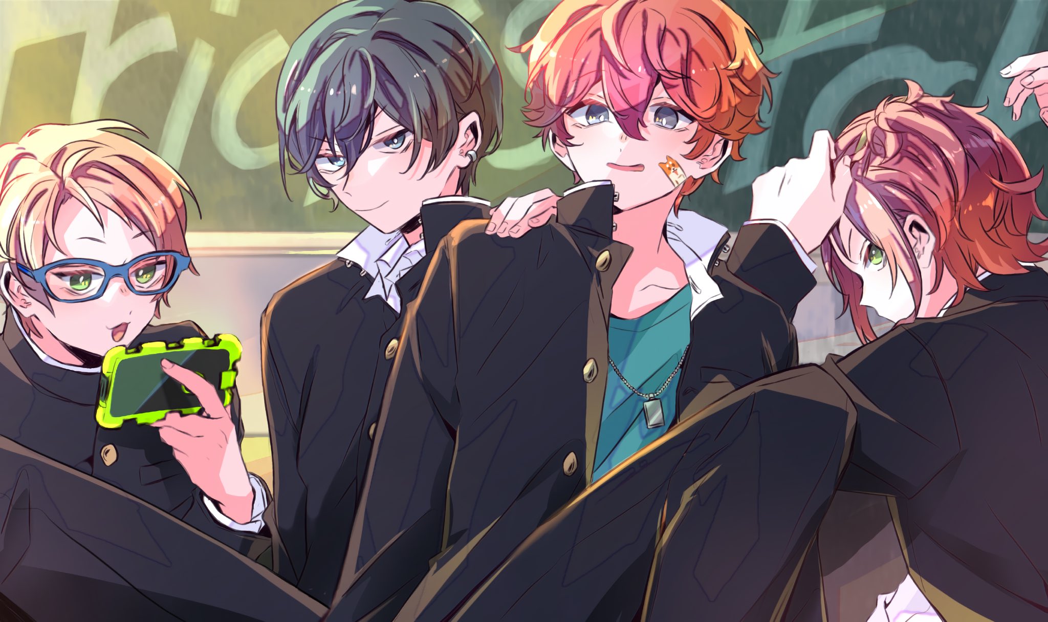 &{ID:13760128 CreatedAt:Mon Mar 30 22:30:47 -0500 2026 Score:0 Width:2048 Height:1215 MD5:d602a95519e7888d2c7199c3e23a5b58 Directory:d6/02 Image:d602a95519e7888d2c7199c3e23a5b58.jpg Rating:general Source:https://x.com/yosuo_0408/status/1887482932480381387 Change:1774927847 Owner:danbooru CreatorID:6498 ParentID:0 Sample:1 PreviewHeight:207 PreviewWidth:350 Tags:4boys akehoshi_subaru arm_up bandaid bandaid_on_face black_hair black_jacket black_pants blonde_hair blue-framed_eyewear blue_eyes cellphone chalkboard closed_mouth commentary ensemble_stars! gakuran glasses green_eyes hair_between_eyes hand_on_another's_shoulder hidaka_hokuto highres holding holding_phone isara_mao jacket long_sleeves looking_at_viewer male_focus multiple_boys open_clothes open_jacket open_mouth orange_hair pants phone red_hair school_uniform short_hair smile trickstar_(ensemble_stars!) yosuo_0408 yuuki_makoto_(ensemble_stars!) Title: HasNotes:false HasComments:false FileURL:https://img2.gelbooru.com/images/d6/02/d602a95519e7888d2c7199c3e23a5b58.jpg PreviewURL:https://gelbooru.com/thumbnails/d6/02/thumbnail_d602a95519e7888d2c7199c3e23a5b58.jpg SampleURL:https://img2.gelbooru.com/samples/d6/02/sample_d602a95519e7888d2c7199c3e23a5b58.jpg SampleHeight:504 SampleWidth:850 Status:active PostLocked:0 HasChildren:false IsVideo:false DisplayDate:30.03.2026 22:30}