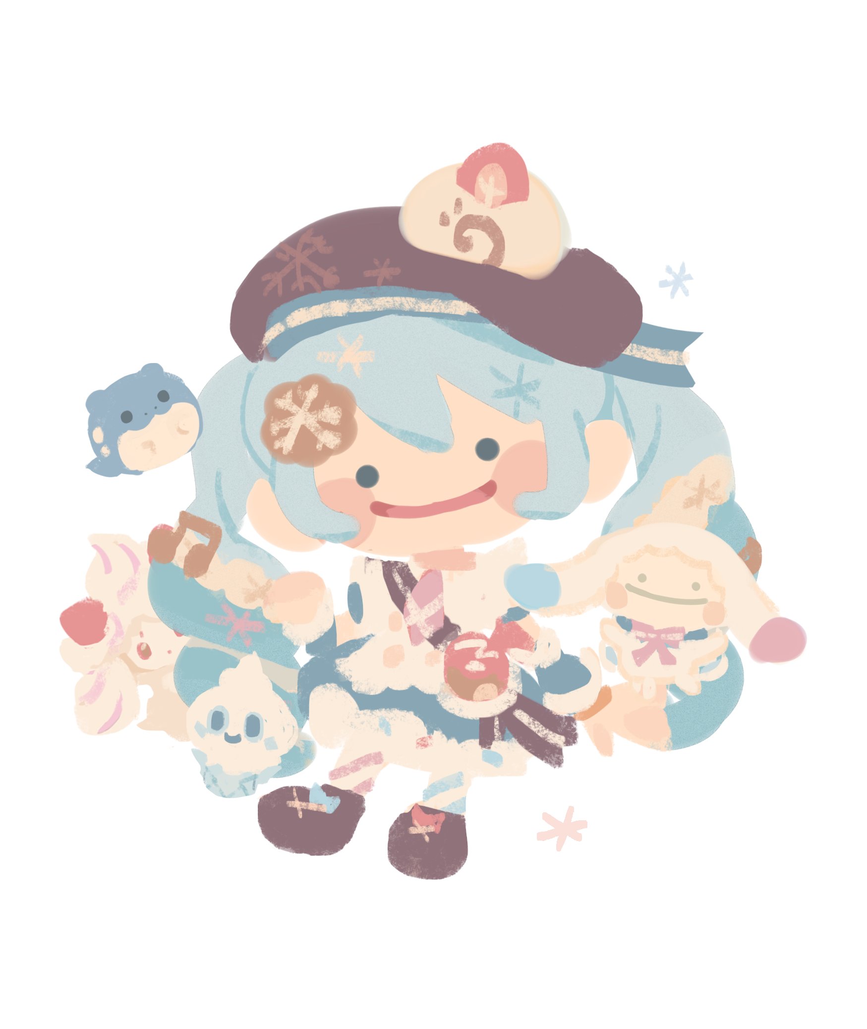 1girl alcremie alcremie_(strawberry_sweet) alcremie_(vanilla_cream) blue_dress blue_eyes blue_hair brown_hat brown_shoes closed_mouth commentary ditto dress english_commentary food fortissimo fruit full_body gen_1_pokemon gen_3_pokemon gen_5_pokemon gen_8_pokemon hair_ornament hat hatsune_miku highres lengkongqiliu long_hair looking_at_viewer musical_note musical_note_hair_ornament nintendo no_nose pantyhose pokemon pokemon_(creature) rabbit_yukine shoes smile solo spheal strawberry striped_clothes striped_pantyhose transformed_ditto twintails vanillite very_long_hair vocaloid white_background white_pantyhose yuki_miku yuki_miku_(2026)