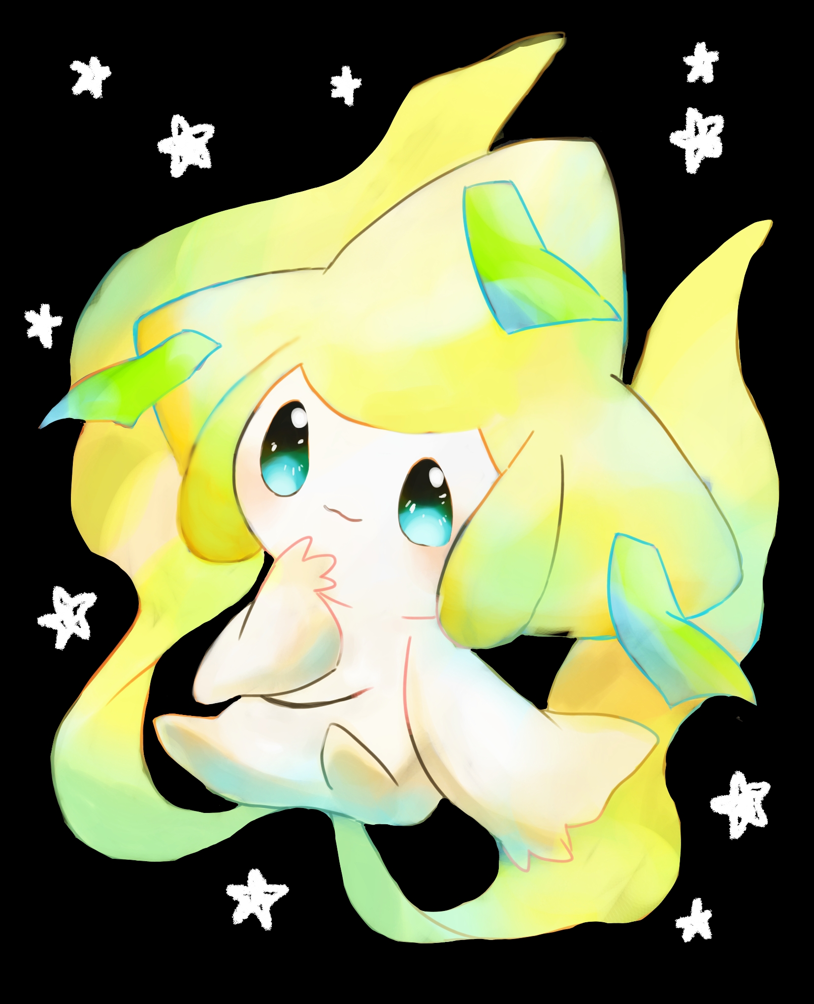 :3 black_background blue_eyes chest_eye commentary_request gen_3_pokemon highres jirachi legendary_pokemon mythical_pokemon nintendo no_humans nullma pokemon pokemon_(creature) solo star_(sky) third_eye