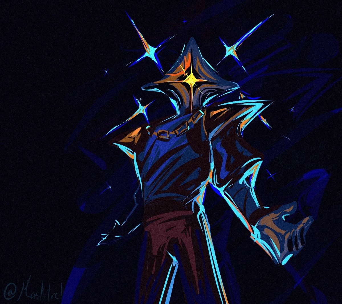 1other chain commentary dark long_sleeves looking_at_viewer masktrel pants shirt slay_the_spire slay_the_spire_2 solo star_(symbol) the_regent_(slay_the_spire) twitter_username untranslatable_commentary yellow_eyes