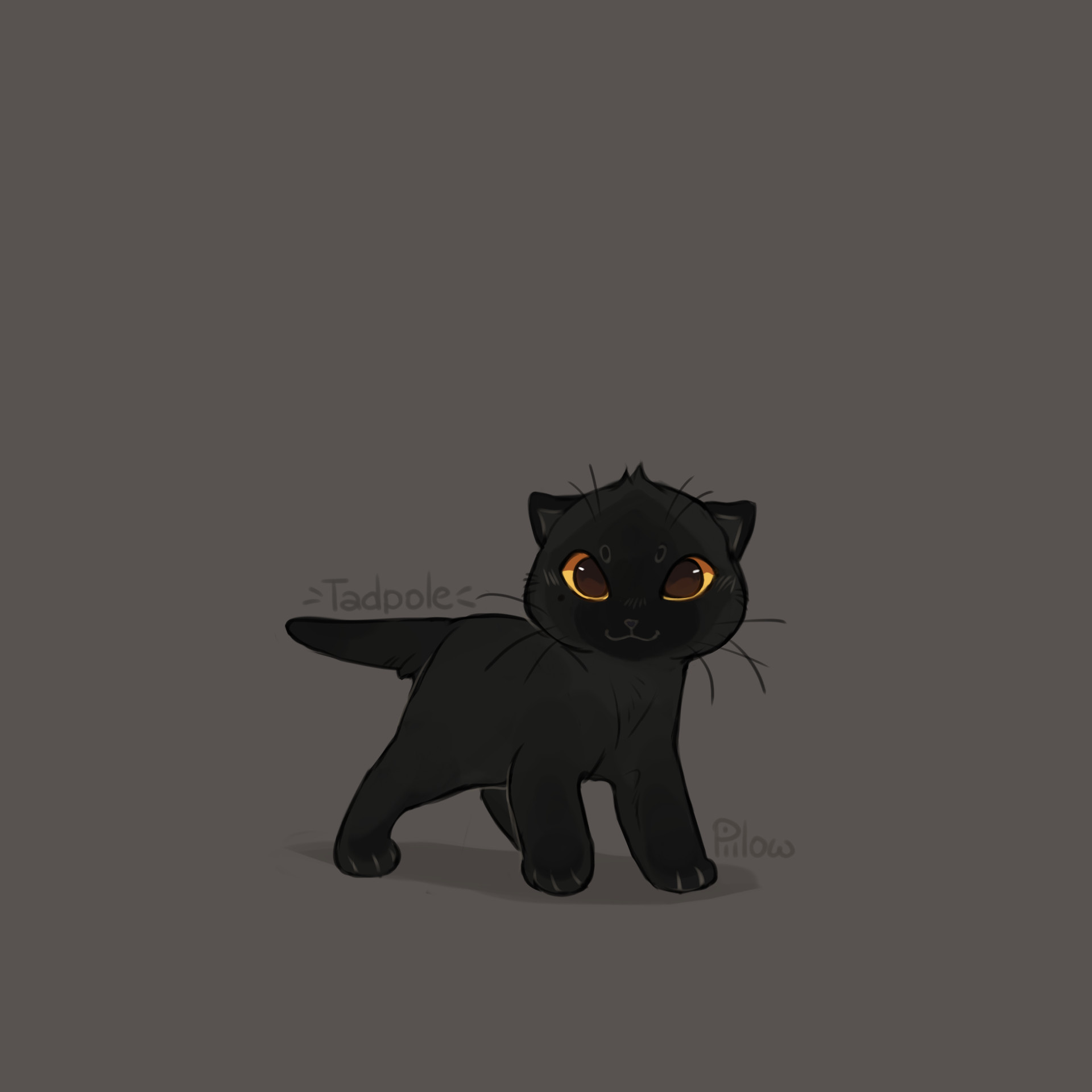 :3 animal animal_focus artist_name baby_animal black_cat cat character_name commentary english_commentary full_body graypillow highres kitten looking_at_viewer no_humans simple_background solo tachi-e tadpole_(warrior_cats) warrior_cats whiskers yellow_eyes