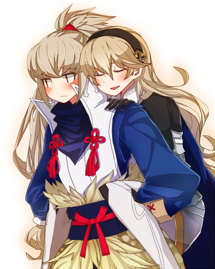 1boy 1girl black_hairband carrying couple female_corrin_(fire_emblem) fire_emblem fire_emblem_fates grey_hair hair_ribbon hairband hetero hio141 japanese_clothes long_hair nintendo ponytail red_ribbon ribbon takumi_(fire_emblem)