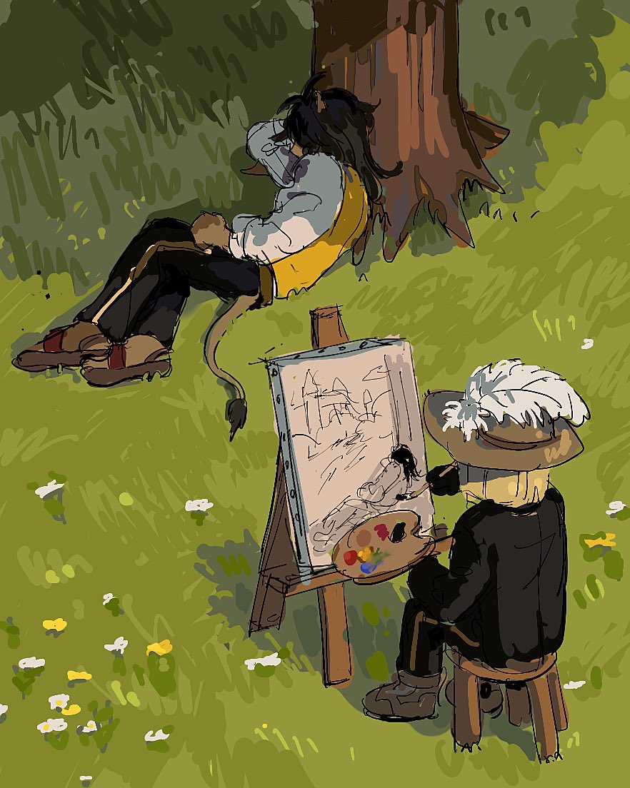 &{ID:13766958 CreatedAt:Tue Mar 31 23:30:56 -0500 2026 Score:1 Width:882 Height:1104 MD5:133dc520ff3c70cdd8a016c6ce557331 Directory:13/3d Image:133dc520ff3c70cdd8a016c6ce557331.jpg Rating:general Source:https://x.com/_z666g_/status/1942139846832869665 Change:1775017856 Owner:danbooru CreatorID:6498 ParentID:0 Sample:0 PreviewHeight:350 PreviewWidth:279 Tags:2boys against_tree animal_ears back-to-back black_gloves black_pants blonde_hair bob_cut boots brown_boots brown_hair bush canvas_(object) chair commentary_request dark-skinned_male dark_skin easel gloves grass hat_feather leona_kingscholar lion_boy lion_ears lion_tail long_hair male_focus multiple_boys night_raven_college_school_uniform on_chair outdoors paint_palette paintbrush painting_(action) pants rook_hunt sandals school_uniform short_hair sitting sleeping sleeping_on_tree tail tree twisted_wonderland ureyyyyy Title: HasNotes:false HasComments:false FileURL:https://img2.gelbooru.com/images/13/3d/133dc520ff3c70cdd8a016c6ce557331.jpg PreviewURL:https://gelbooru.com/thumbnails/13/3d/thumbnail_133dc520ff3c70cdd8a016c6ce557331.jpg SampleURL: SampleHeight:0 SampleWidth:0 Status:active PostLocked:0 HasChildren:false IsVideo:false DisplayDate:31.03.2026 23:30}
