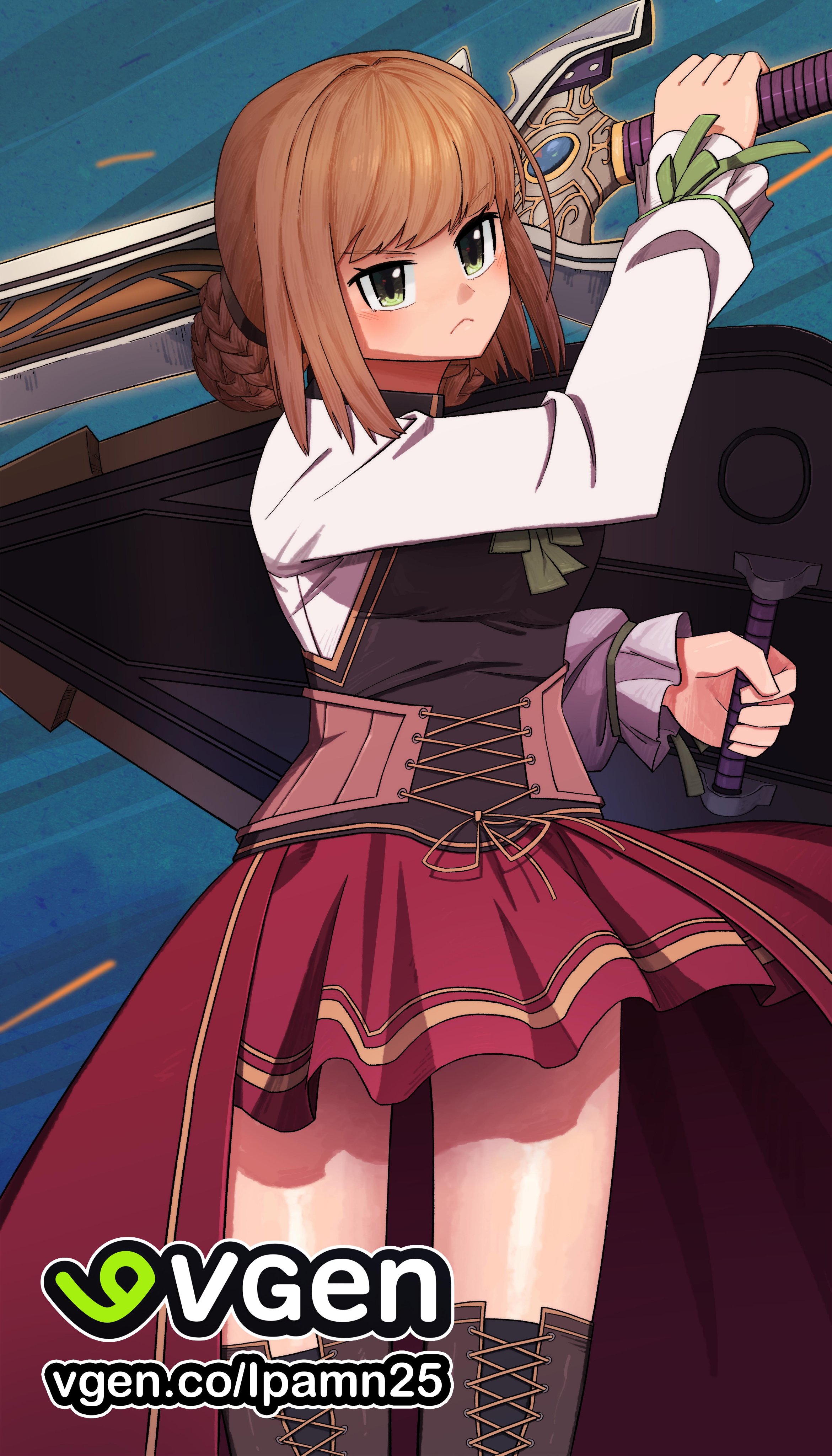 &{ID:13767242 CreatedAt:Wed Apr 01 00:31:06 -0500 2026 Score:1 Width:2341 Height:4096 MD5:44dc18b5f4e46276ffc8a72e589fb310 Directory:44/dc Image:44dc18b5f4e46276ffc8a72e589fb310.jpg Rating:general Source:https://x.com/Zephyrrr_25/status/2039134378589298764 Change:1775021467 Owner:danbooru CreatorID:6498 ParentID:0 Sample:1 PreviewHeight:350 PreviewWidth:200 Tags:1girl absurdres bob_cut boots braid bun_with_braided_base closed_mouth commentary commission corset duvalie eiyuu_densetsu english_commentary frown green_eyes green_neckerchief hair_bun highres holding holding_shield holding_sword holding_weapon huge_weapon long_sleeves looking_at_viewer neckerchief red_skirt sen_no_kiseki sen_no_kiseki_(series) sen_no_kiseki_iv shield short_hair single_hair_bun skirt solo sword thigh_boots tied_sleeves upper_body vgen_commission vgen_logo vgen_username weapon zephyrrr_25 Title: HasNotes:false HasComments:false FileURL:https://img2.gelbooru.com/images/44/dc/44dc18b5f4e46276ffc8a72e589fb310.jpg PreviewURL:https://gelbooru.com/thumbnails/44/dc/thumbnail_44dc18b5f4e46276ffc8a72e589fb310.jpg SampleURL:https://img2.gelbooru.com/samples/44/dc/sample_44dc18b5f4e46276ffc8a72e589fb310.jpg SampleHeight:1487 SampleWidth:850 Status:active PostLocked:0 HasChildren:false IsVideo:false DisplayDate:01.04.2026 00:31}