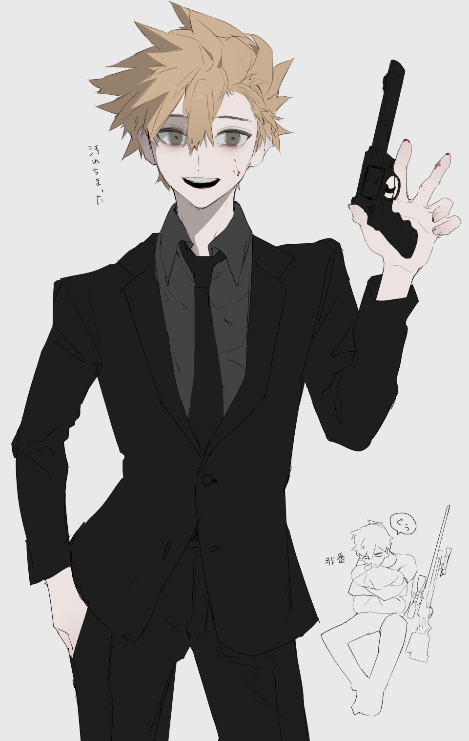 &{ID:13767280 CreatedAt:Wed Apr 01 00:45:21 -0500 2026 Score:0 Width:961 Height:1517 MD5:4b4ba422e575fe67a966d2f27781857e Directory:4b/4b Image:4b4ba422e575fe67a966d2f27781857e.jpg Rating:general Source:https://x.com/htrgt_0141/status/2039196742667882563 Change:1775041379 Owner:danbooru CreatorID:6498 ParentID:0 Sample:0 PreviewHeight:350 PreviewWidth:221 Tags:1boy black_jacket black_necktie black_pants blue_oak brown_eyes brown_hair collared_shirt commentary_request grey_shirt gun hair_between_eyes hand_in_pocket hand_up handgun highres holding holding_gun holding_weapon jacket long_sleeves male_focus multiple_views necktie nintendo open_mouth pants pokemon pokemon_red/green/blue/yellow red_(pokemon) rifle sekaiitinoki shirt short_hair speech_bubble teeth translation_request upper_teeth_only weapon white_background Title: HasNotes:false HasComments:false FileURL:https://img2.gelbooru.com/images/4b/4b/4b4ba422e575fe67a966d2f27781857e.jpg PreviewURL:https://gelbooru.com/thumbnails/4b/4b/thumbnail_4b4ba422e575fe67a966d2f27781857e.jpg SampleURL: SampleHeight:0 SampleWidth:0 Status:active PostLocked:0 HasChildren:false IsVideo:false DisplayDate:01.04.2026 00:45}