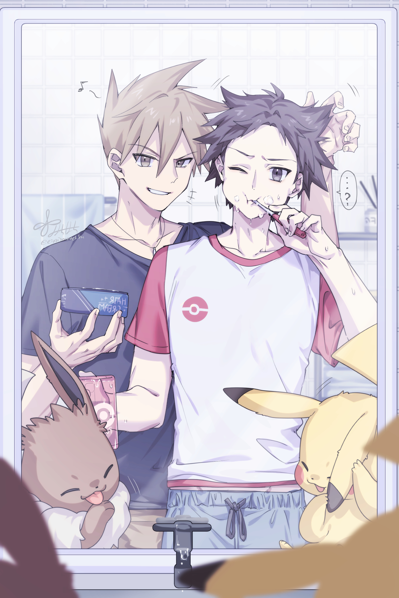 &{ID:13770405 CreatedAt:Wed Apr 01 12:30:24 -0500 2026 Score:0 Width:1333 Height:2000 MD5:d82742cd18e02bd7e8c1ec6aef85b4c9 Directory:d8/27 Image:d82742cd18e02bd7e8c1ec6aef85b4c9.jpg Rating:general Source:https://x.com/einnimnech8u/status/2039384643456442460 Change:1775120392 Owner:danbooru CreatorID:6498 ParentID:0 Sample:1 PreviewHeight:350 PreviewWidth:233 Tags:2boys 2girls 88_(einnimnech) bathroom black_shirt blue_oak brown_eyes brown_hair brown_pants brushing_teeth closed_eyes collarbone commentary_request cup eevee faucet gen_1_pokemon grey_pants grooming hair_gel highres holding holding_cup holding_toothbrush jewelry licking_paw male_focus mirror multiple_boys multiple_girls necklace nintendo one_eye_closed open_mouth pants pikachu pokemon pokemon_(creature) pokemon_sun_and_moon red_(pokemon) reflection reflection_focus shirt short_hair sink smile toothbrush toothbrush_in_mouth toothpaste water white_shirt Title: HasNotes:false HasComments:false FileURL:https://img2.gelbooru.com/images/d8/27/d82742cd18e02bd7e8c1ec6aef85b4c9.jpg PreviewURL:https://gelbooru.com/thumbnails/d8/27/thumbnail_d82742cd18e02bd7e8c1ec6aef85b4c9.jpg SampleURL:https://img2.gelbooru.com/samples/d8/27/sample_d82742cd18e02bd7e8c1ec6aef85b4c9.jpg SampleHeight:1275 SampleWidth:850 Status:active PostLocked:0 HasChildren:false IsVideo:false DisplayDate:01.04.2026 12:30}