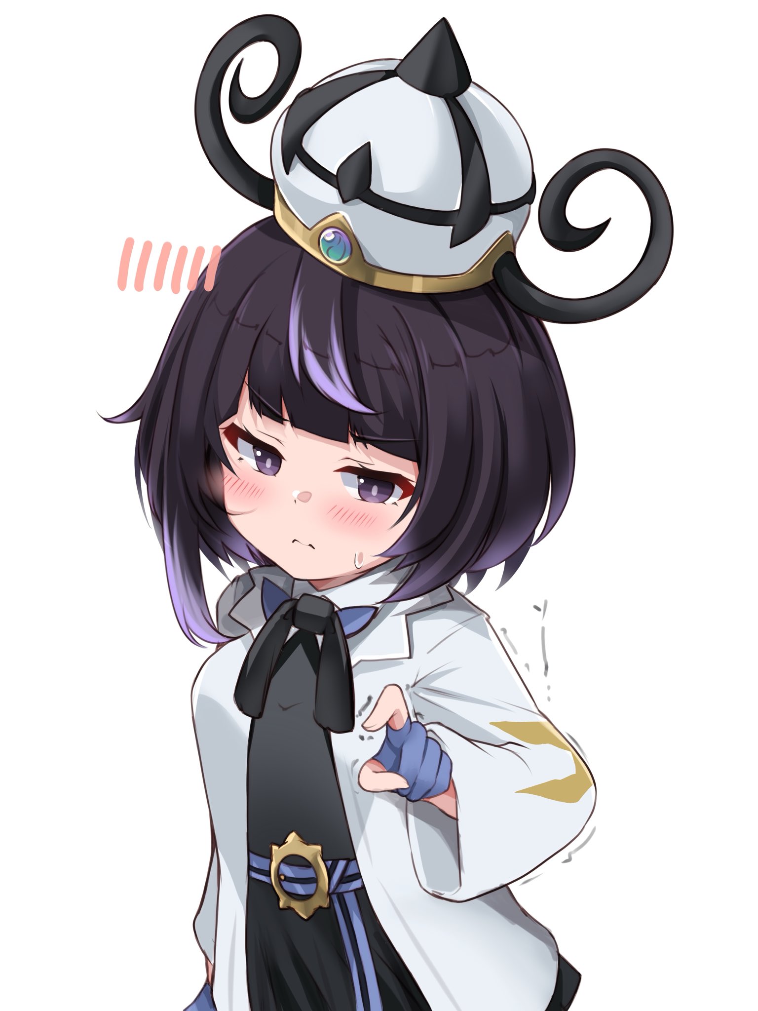 1girl bob_cut coat dress gloves gwynn_(pokemon) hat highres kurokaze_no_sora long_sleeves pokemon pokemon_legends:_z-a purple_eyes purple_hair short_hair white_coat