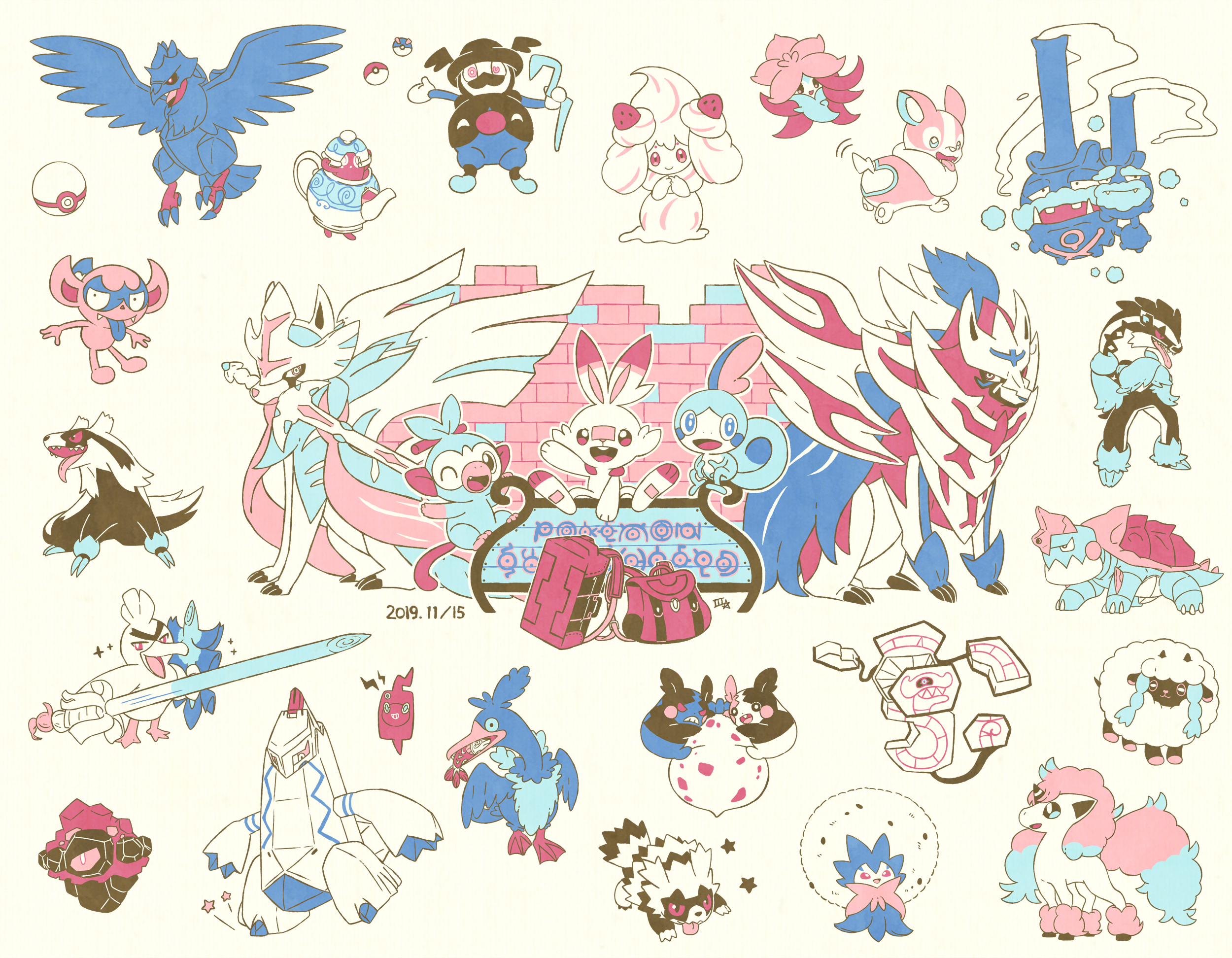 alcremie alcremie_(strawberry_sweet) alcremie_(vanilla_cream) arrokuda backpack bag berry_(pokemon) cane claws closed_mouth commentary_request corviknight cramorant dated duraludon eldegoss fangs food full_body galarian_form galarian_linoone galarian_ponyta galarian_weezing galarian_zigzagoon gen_2_pokemon gen_4_pokemon gen_8_pokemon gloria_(pokemon) gossifleur great_ball grookey highres holding holding_cane holding_food holding_shield holding_spring_onion holding_sword holding_vegetable holding_weapon impidimp legendary_pokemon limited_palette morpeko morpeko_(full) morpeko_(hangry) mouth_hold mr._rime nintendo nostrils one_eye_closed open_mouth pointy_ears poke_ball poke_ball_(basic) pokemon pokemon_(creature) pokemon_focus pokemon_sword_and_shield polteageist premier_ball rolycoly rotom rotom_phone runerigus samsung_(yuzuikka) scorbunny sharp_teeth shield simple_background sirfetch'd sitrus_berry sitting smile sobble spring_onion star_(symbol) sword sword_in_mouth teeth tongue tongue_out unown unown_d unown_e unown_h unown_i unown_k unown_l unown_m unown_n unown_o unown_p unown_s unown_w unworn_backpack unworn_bag upper_teeth_only vegetable victor_(pokemon) weapon white_background wooloo yamper zacian zacian_(crowned) zamazenta zamazenta_(crowned)