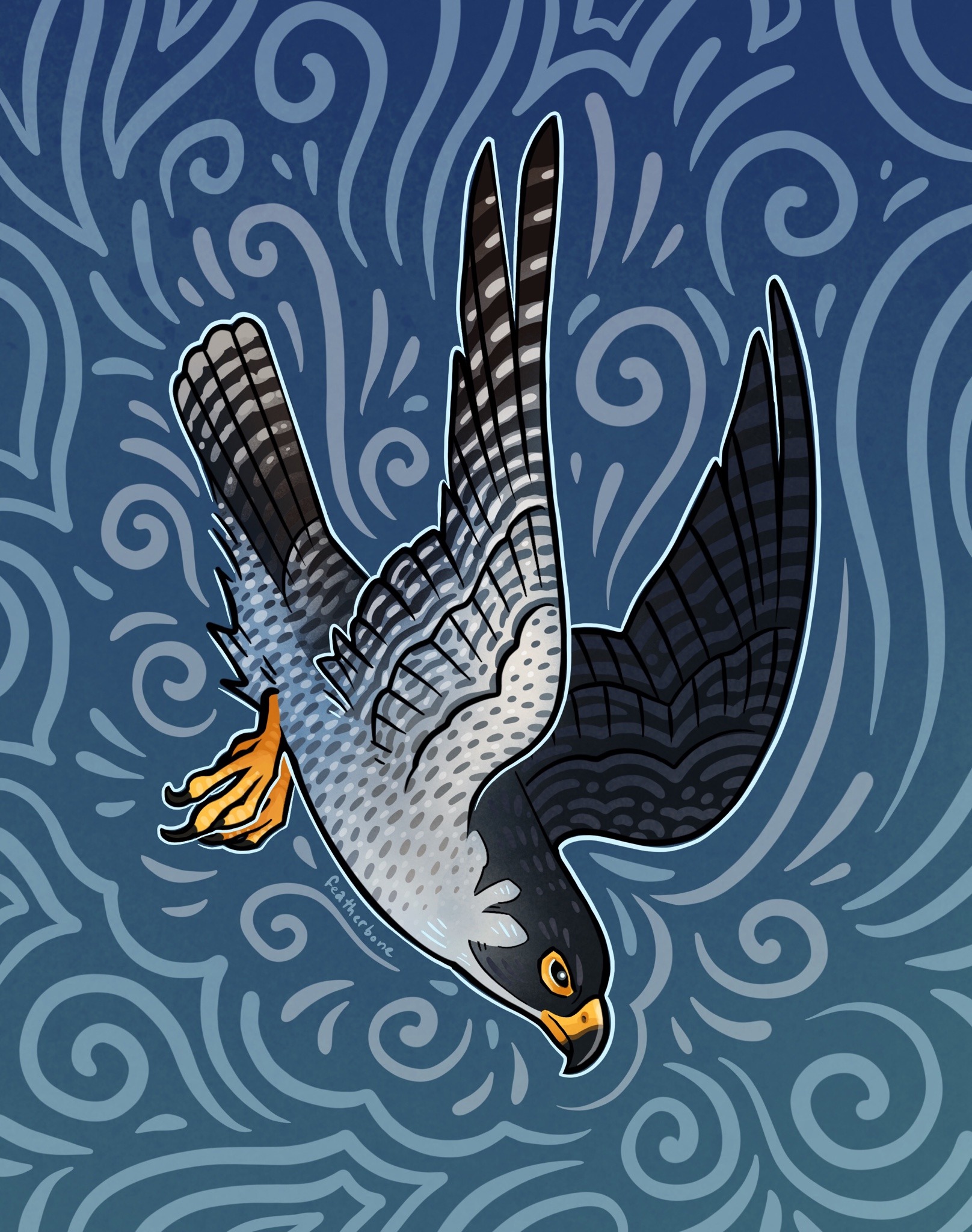 abstract_background animal_focus artist_name bird blue_background commentary english_commentary falcon feather-bone highres no_humans original peregrine_falcon solo