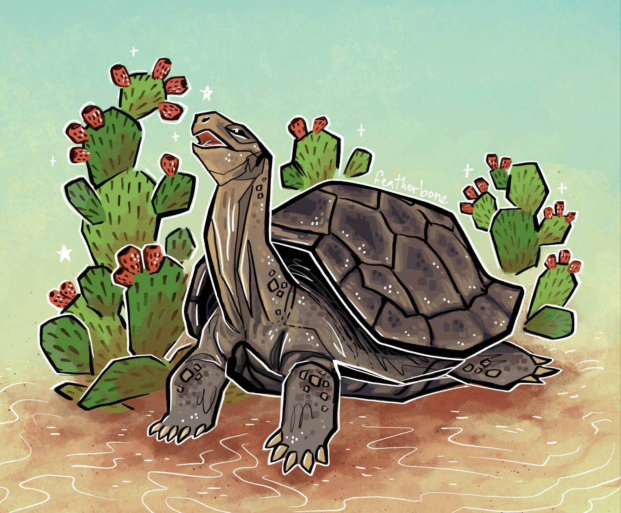 animal_focus artist_name cactus commentary english_commentary feather-bone galapagos_tortoise highres no_humans open_mouth original solo tortoise turtle