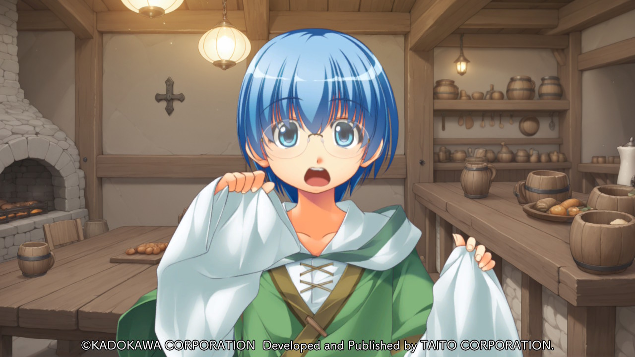 1boy atelier-moo blue_eyes blue_hair christpher_cross_(revival) game_cg glasses green_robe hair_between_eyes hooded_robe indoors layered_sleeves long_sleeves non-web_source official_art open_mouth oversized_clothes robe short_hair short_over_long_sleeves short_sleeves sleeves_past_wrists solo standing surprised teeth upper_body upper_teeth_only wide-eyed yuukyuu_gensoukyoku yuukyuu_gensoukyoku_revival