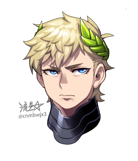 1girl adeptus_astartes angry armor artist_name blonde_hair blue_eyes genderswap genderswap_(mtf) laurel_crown looking_to_the_side neck_armor primarch roboute_guilliman ryuusei_(mark_ii) short_hair simple_background solo tagme ultramarines upper_body warhammer_40k white_background
