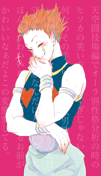 &{ID:13777062 CreatedAt:Thu Apr 02 13:30:40 -0500 2026 Score:0 Width:406 Height:708 MD5:bace3498156c4ac855f873014eeb027f Directory:ba/ce Image:bace3498156c4ac855f873014eeb027f.png Rating:general Source:https://www.pixiv.net/artworks/33911022 Change:1775154640 Owner:danbooru CreatorID:6498 ParentID:0 Sample:0 PreviewHeight:350 PreviewWidth:200 Tags:+++ 1boy armlet black_vest blush bracelet chuu_ni closed_mouth collared_vest commentary_request cowboy_shot diamond_(shape) facial_mark hand_on_own_face heart hisoka_morow hunter_x_hunter jewelry laughing male_focus medium_sideburns red_background red_hair short_hair sideburns smile solo standing teardrop_facial_mark translation_request vest Title: HasNotes:false HasComments:false FileURL:https://img2.gelbooru.com/images/ba/ce/bace3498156c4ac855f873014eeb027f.png PreviewURL:https://gelbooru.com/thumbnails/ba/ce/thumbnail_bace3498156c4ac855f873014eeb027f.jpg SampleURL: SampleHeight:0 SampleWidth:0 Status:active PostLocked:0 HasChildren:false IsVideo:false DisplayDate:02.04.2026 13:30}