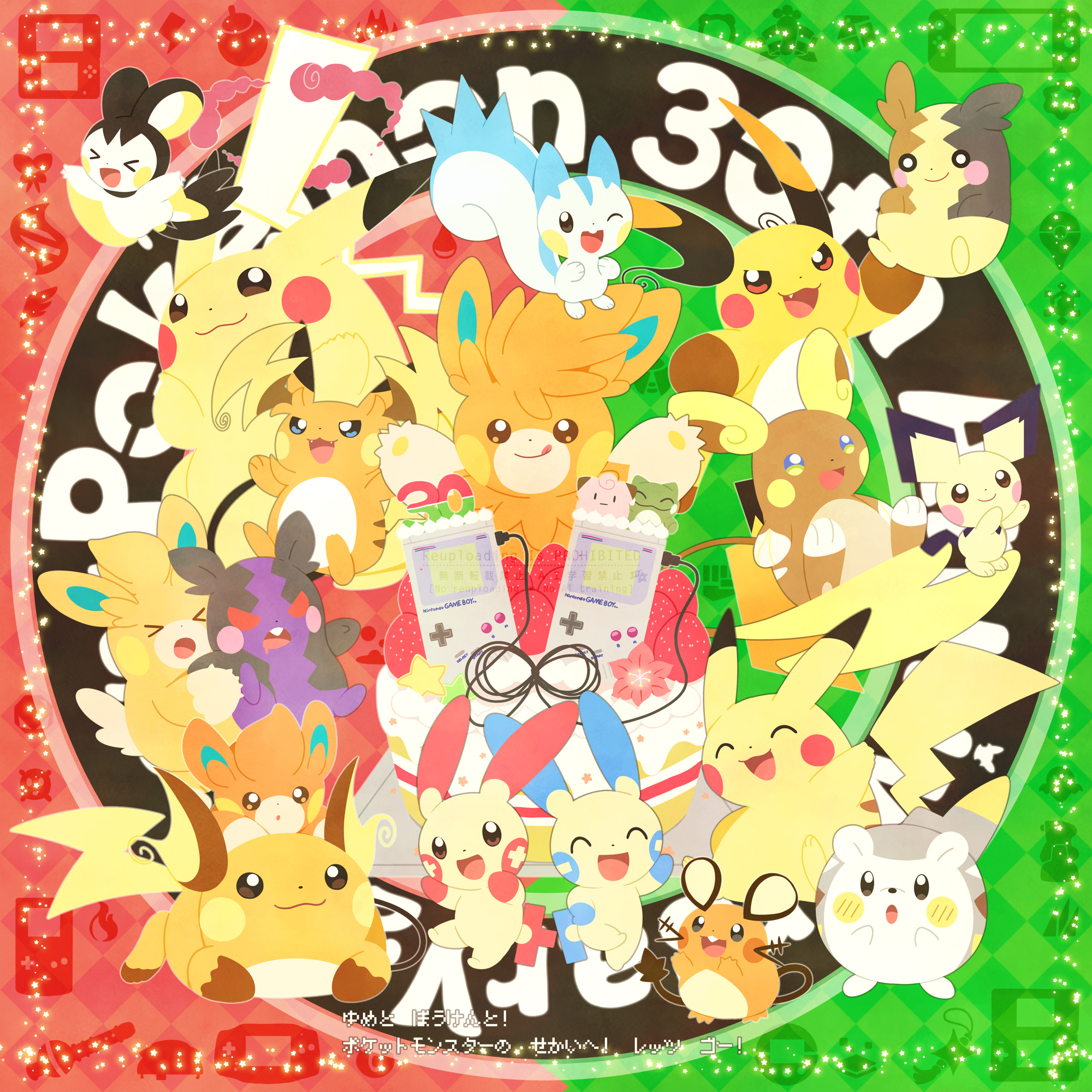 >_< :3 :o :q ^_^ alolan_form alolan_raichu anniversary apricorn cable cake clefairy closed_eyes closed_mouth commentary_request dedenne dot_nose dynamax emolga food fruit game_boy game_boy_(original) game_boy_advance game_link_cable gen_1_pokemon gen_2_pokemon gen_3_pokemon gen_4_pokemon gen_5_pokemon gen_6_pokemon gen_7_pokemon gen_8_pokemon gigantamax gigantamax_pikachu handheld_game_console highres mega_evolution_symbol mega_raichu_x mega_raichu_y minun morpeko morpeko_(full) morpeko_(hangry) nintendo nintendo_3ds nintendo_ds nintendo_switch o_o open_mouth pachirisu pawmi pawmo pawmot pichu pikachu pikaclones plusle pokemon pokemon_(creature) pokemon_day pokemon_focus pokemon_red/green/blue/yellow pokemon_ribbon pokewalker potion_(pokemon) raichu samsung_(yuzuikka) shiny_charm_(pokemon) smile star_(symbol) strawberry strawberry_cake substitute_(pokemon) togedemaru tongue tongue_out two-tone_background v-shaped_eyes virtual_pet_(toy)