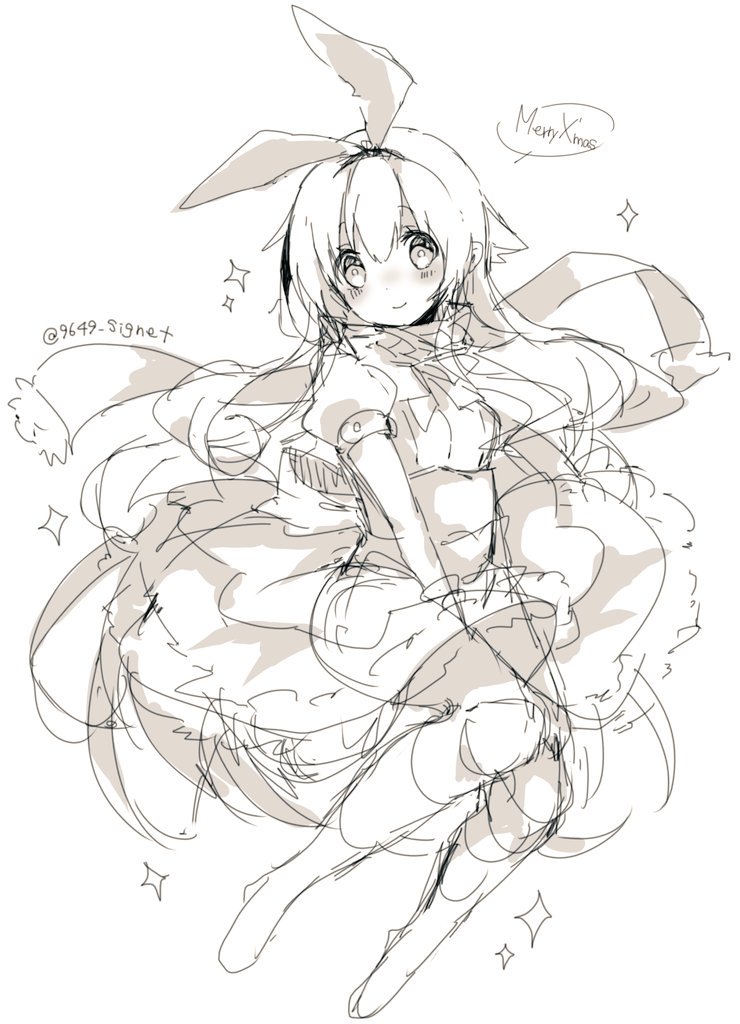 1girl alice_(grimms_notes) alice_(seiya)_(grimms_notes) az_9649 closed_mouth english_text full_body grimms_notes hair_between_eyes long_hair looking_at_viewer merry_christmas puffy_short_sleeves puffy_sleeves scarf shirt short_sleeves simple_background skirt smile solo sparkle speech_bubble twitter_username white_background
