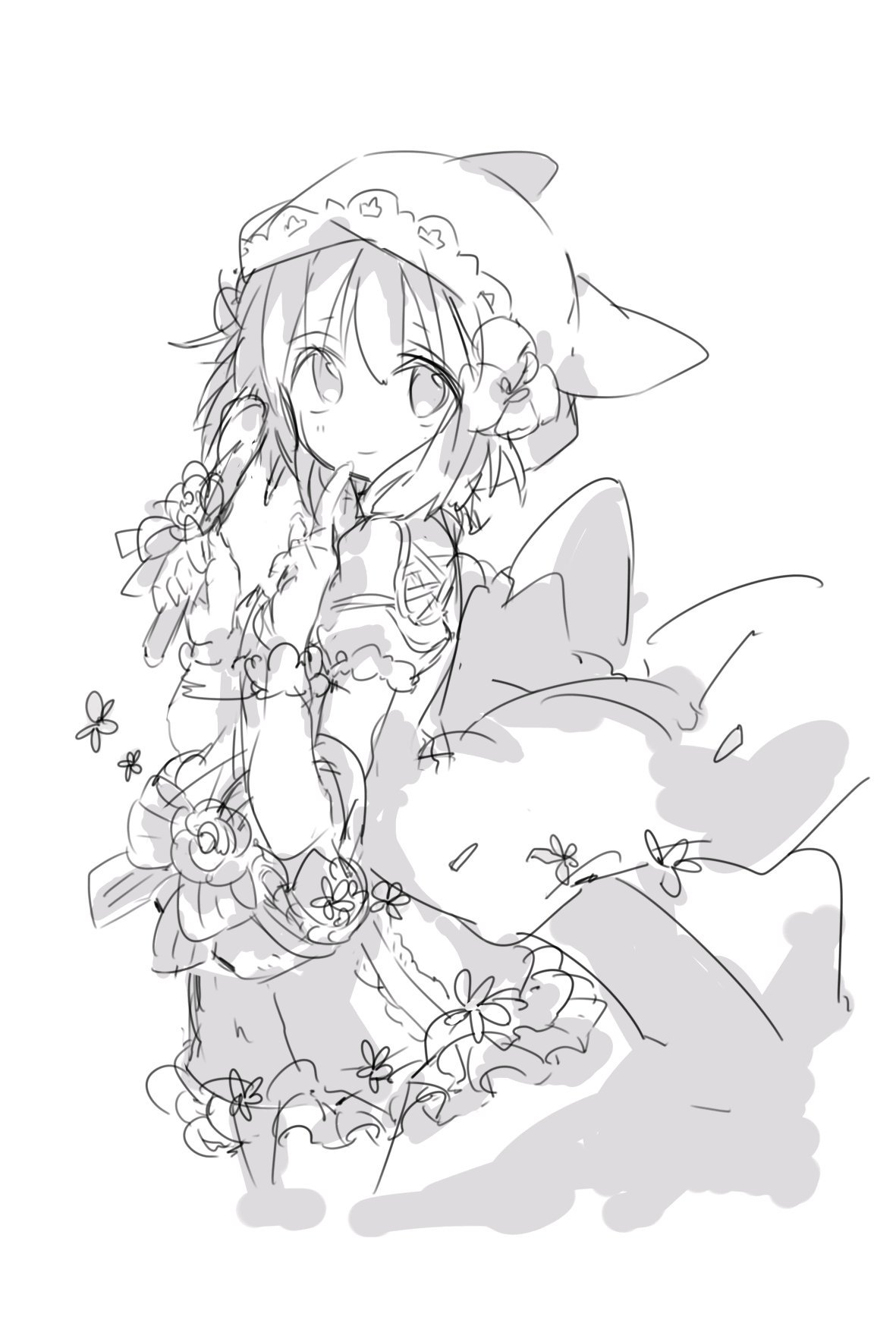 1girl az_9649 grimms_notes looking_at_viewer red_riding_hood_(grimms_notes) red_riding_hood_(summer)_(grimms_notes) simple_background sketch solo white_background