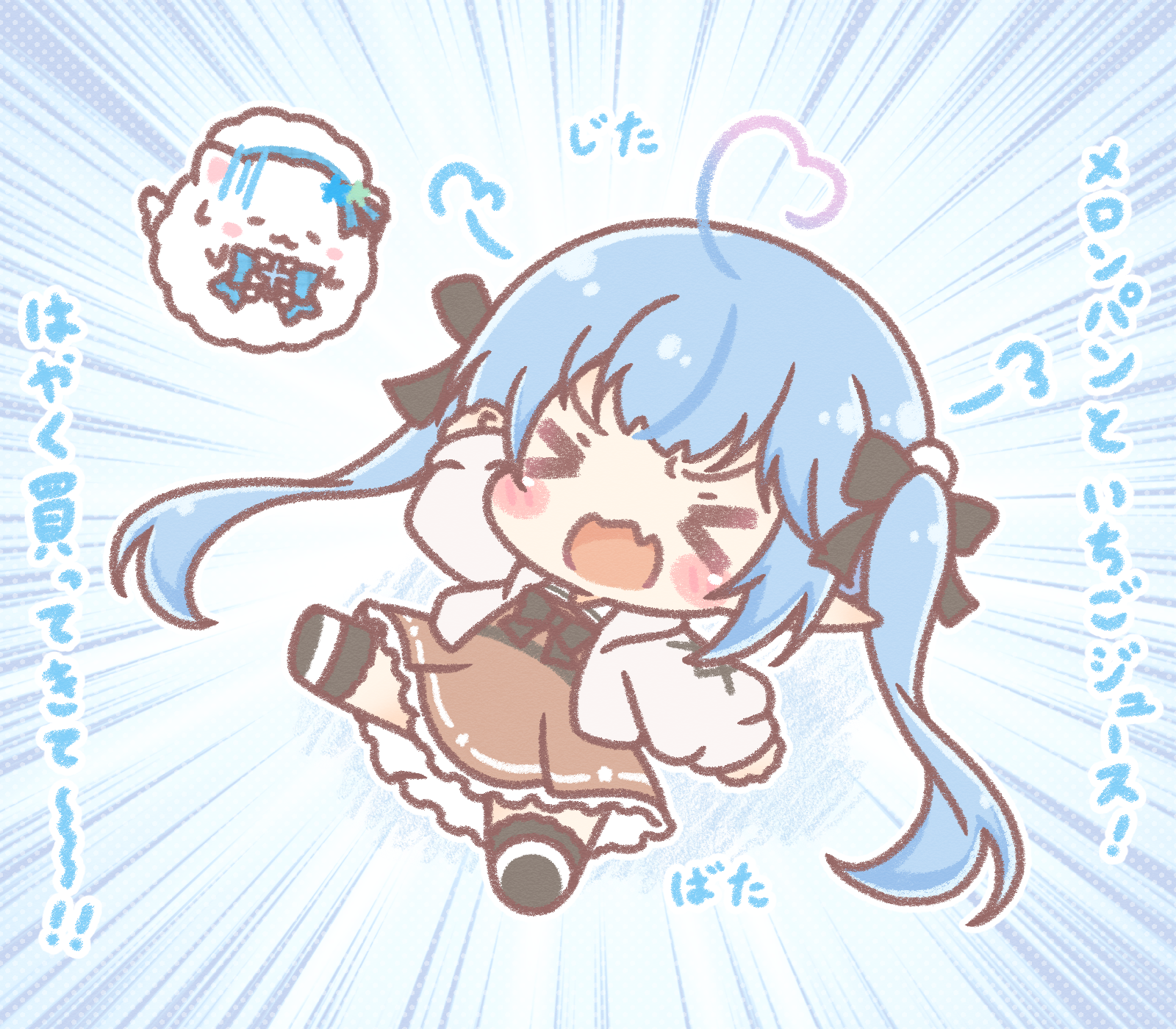 >_< 1girl ahoge beret black_bow black_socks blue_bow blue_hair blush_stickers bow brown_dress chibi closed_eyes colored_shadow commentary_request dress emphasis_lines fang gradient_hair grey_jacket hair_bow hat heart heart_ahoge highres hololive jacket long_hair long_sleeves mitarashi_neko multicolored_hair open_clothes open_jacket open_mouth pink_hair pointy_ears puffy_long_sleeves puffy_sleeves shadow shoe_soles shoes socks streaked_hair translation_request turn_pale twintails very_long_hair virtual_youtuber wavy_mouth white_hat white_shoes yukihana_lamy yukihana_lamy_(casual) yukimin_(yukihana_lamy)