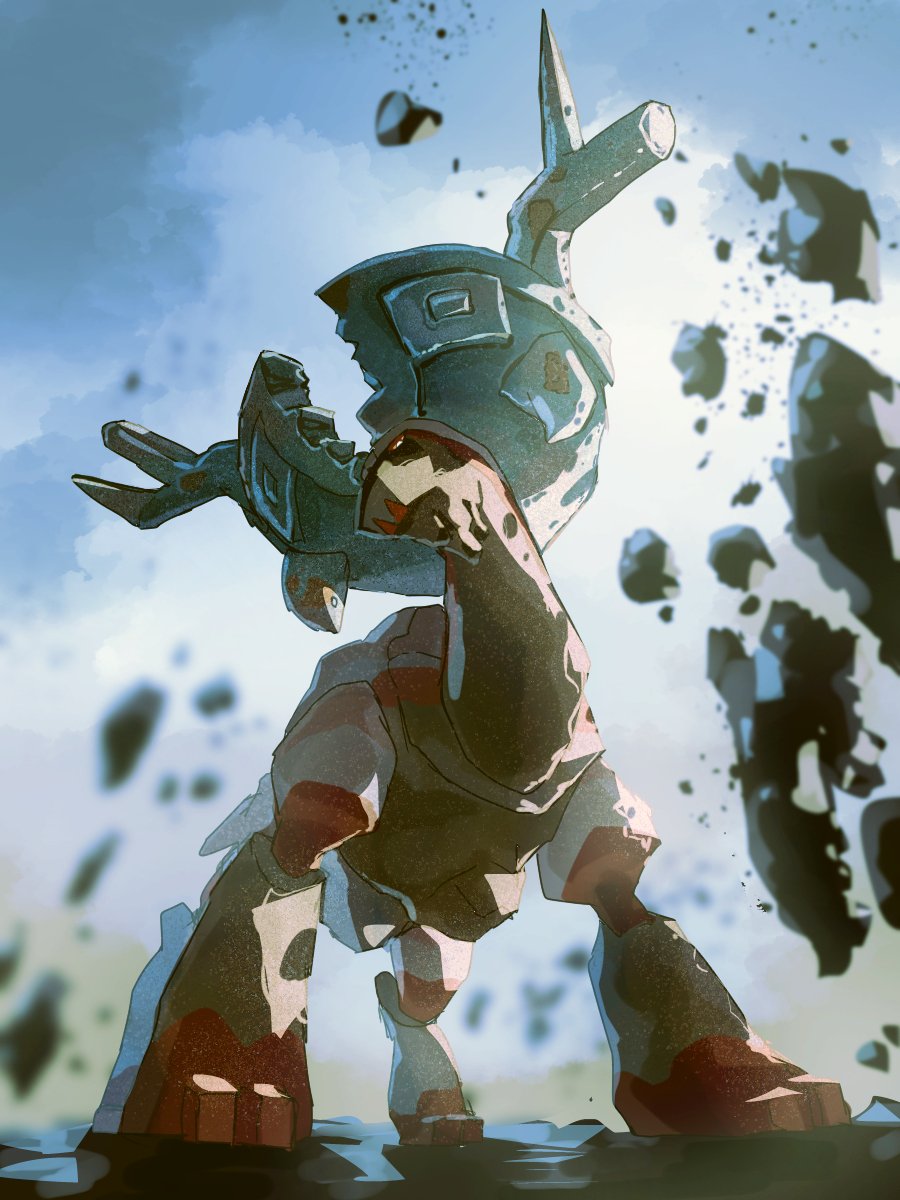 animal_focus blue_sky cloud commentary_request day debris full_body fusenryo highres nintendo no_humans one-hour_drawing_challenge outdoors pokemon pokemon_(creature) pokemon_focus sky solo ting-lu