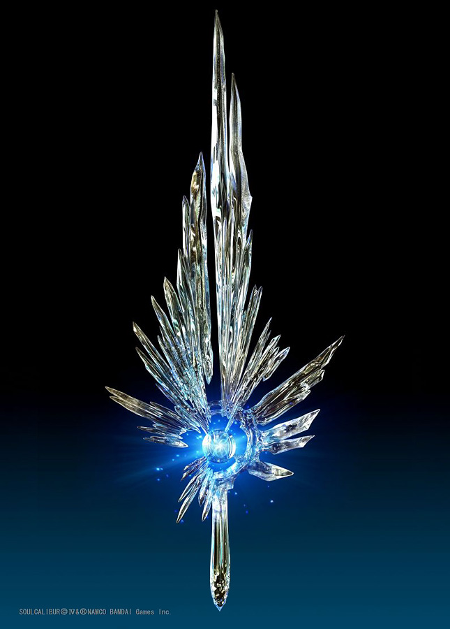 bandai_namco black_background blue_background crystal crystal_sword floating floating_object floating_weapon glowing glowing_sword glowing_weapon gradient_background greatsword no_humans object_focus official_art soul_calibur soul_calibur_(crystal_greatsword) soulcalibur soulcalibur_iv sword weapon