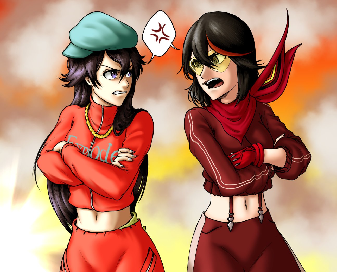 &{ID:13780827 CreatedAt:Fri Apr 03 04:45:35 -0500 2026 Score:3 Width:1295 Height:1045 MD5:9dc3b72cf693c904b1d70d64aa72b9d9 Directory:9d/c3 Image:9dc3b72cf693c904b1d70d64aa72b9d9.jpg Rating:general Source:https://x.com/Cellexion/status/2039665389013991683 Change:1775209535 Owner:danbooru CreatorID:6498 ParentID:0 Sample:1 PreviewHeight:282 PreviewWidth:350 Tags:2girls anger_vein bambietta_basterbine black_hair bleach bleach:_sennen_kessen-hen blue_hat breasts chris-jin clenched_teeth commentary commission cropped_jacket crossed_arms crossover english_commentary gloves grey_eyes hair_between_eyes hat jacket jewelry kill_la_kill long_hair long_sleeves looking_at_another matoi_ryuuko medium_breasts medium_hair midriff multicolored_hair multiple_girls nail_polish navel necklace official_alternate_costume open_mouth orange_background pants print_jacket purple_eyes red_gloves red_jacket red_pants red_scarf red_streaks red_track_suit scarf second-party_source senketsu senketsu_(scarf) single_glove spoken_anger_vein standing streaked_hair suspender_pants teeth tinted_eyewear track_suit yellow-tinted_eyewear Title: HasNotes:false HasComments:false FileURL:https://img2.gelbooru.com/images/9d/c3/9dc3b72cf693c904b1d70d64aa72b9d9.jpg PreviewURL:https://gelbooru.com/thumbnails/9d/c3/thumbnail_9dc3b72cf693c904b1d70d64aa72b9d9.jpg SampleURL:https://img2.gelbooru.com/samples/9d/c3/sample_9dc3b72cf693c904b1d70d64aa72b9d9.jpg SampleHeight:686 SampleWidth:850 Status:active PostLocked:0 HasChildren:false IsVideo:false DisplayDate:03.04.2026 04:45}