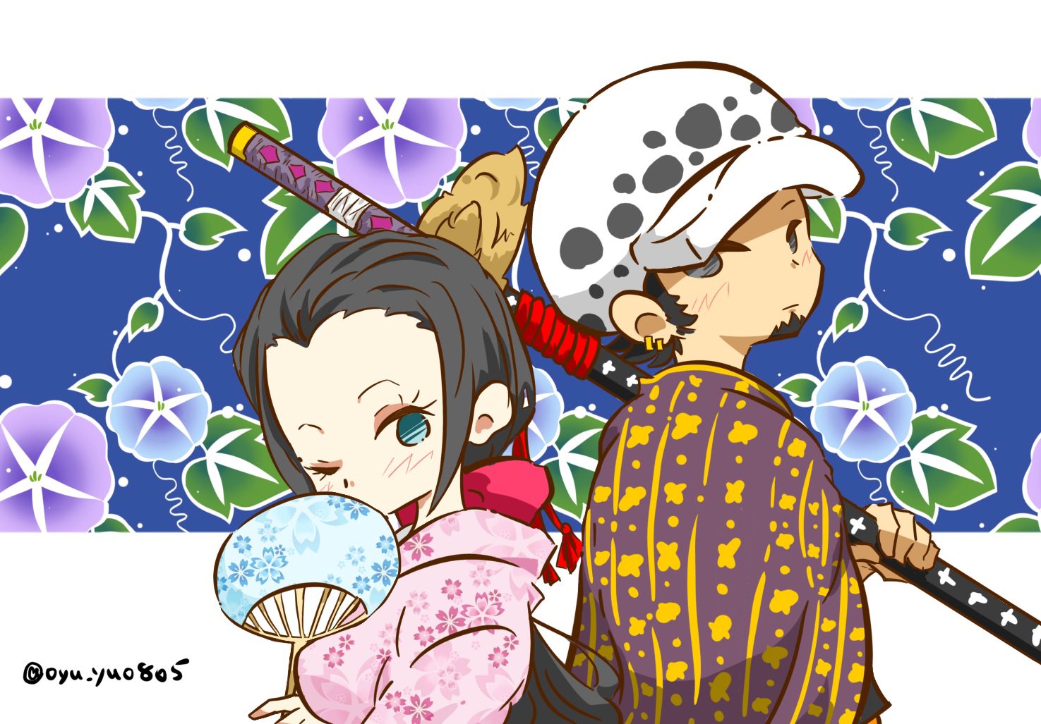 &{ID:13784626 CreatedAt:Fri Apr 03 16:30:41 -0500 2026 Score:0 Width:1475 Height:1027 MD5:b009062bfa9328d64d91a6cc5cfe454c Directory:b0/09 Image:b009062bfa9328d64d91a6cc5cfe454c.jpg Rating:general Source:https://x.com/oyu_yu0805/status/1864942463506616601 Change:1775251841 Owner:danbooru CreatorID:6498 ParentID:0 Sample:1 PreviewHeight:243 PreviewWidth:350 Tags:1boy 1girl black_hair blue_eyes blush bow closed_mouth commentary_request facial_hair floral_print floral_print_kimono goatee hair_bow hand_fan haori_on_shoulders hat holding holding_fan holding_sword holding_weapon japanese_clothes kimono looking_at_viewer mikado85 nico_robin one_eye_closed one_piece pink_kimono ponytail print_kimono sideburns sidelocks sword trafalgar_law weapon Title: HasNotes:false HasComments:false FileURL:https://img2.gelbooru.com/images/b0/09/b009062bfa9328d64d91a6cc5cfe454c.jpg PreviewURL:https://gelbooru.com/thumbnails/b0/09/thumbnail_b009062bfa9328d64d91a6cc5cfe454c.jpg SampleURL:https://img2.gelbooru.com/samples/b0/09/sample_b009062bfa9328d64d91a6cc5cfe454c.jpg SampleHeight:592 SampleWidth:850 Status:active PostLocked:0 HasChildren:false IsVideo:false DisplayDate:03.04.2026 16:30}
