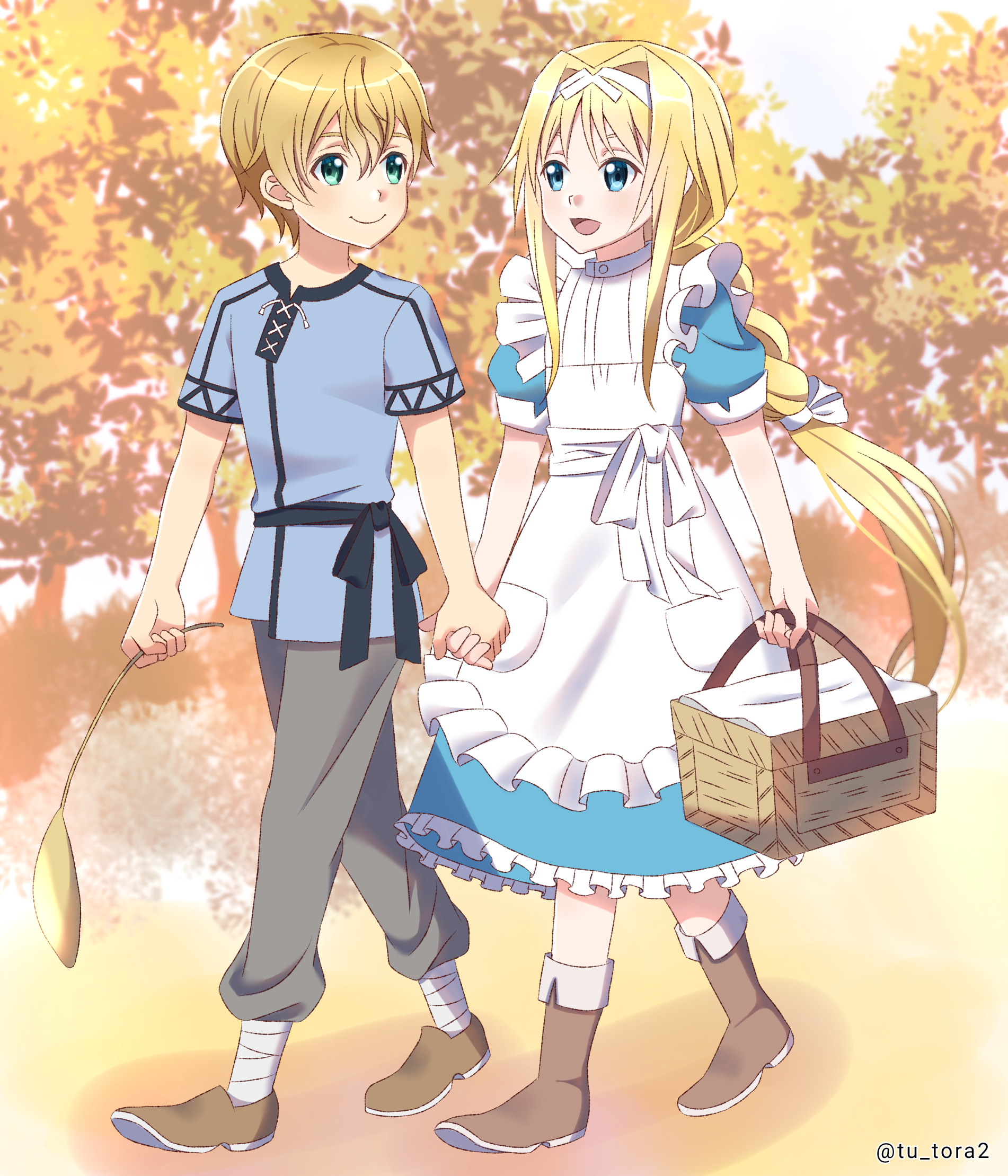 &{ID:13791275 CreatedAt:Sat Apr 04 16:16:34 -0500 2026 Score:0 Width:1902 Height:2219 MD5:bcc2d6a47341aee7d6ff31d1358654e4 Directory:bc/c2 Image:bcc2d6a47341aee7d6ff31d1358654e4.png Rating:general Source:https://www.pixiv.net/artworks/96090848 Change:1775337395 Owner:danbooru CreatorID:6498 ParentID:0 Sample:1 PreviewHeight:350 PreviewWidth:300 Tags:1boy 1girl :d alice_zuberg ankle_boots aqua_eyes artist_name autumn basket black_trim blonde_hair blue_eyes blue_shirt blurry blurry_background boots braid braided_ponytail brown_boots child closed_mouth commentary_request couple double-parted_bangs dress eugeo frilled_dress frills grey_pants hair_between_eyes hair_ribbon hetero highres holding holding_basket holding_hands knee_boots long_hair long_sidelocks looking_at_another medium_dress open_mouth pants ribbon shirt short_hair short_sleeves sidelocks smile sword_art_online sword_art_online:_alicization tu_tora2 twitter_username two-tone_dress walking watermark white_dress white_ribbon Title: HasNotes:false HasComments:false FileURL:https://img2.gelbooru.com/images/bc/c2/bcc2d6a47341aee7d6ff31d1358654e4.png PreviewURL:https://gelbooru.com/thumbnails/bc/c2/thumbnail_bcc2d6a47341aee7d6ff31d1358654e4.jpg SampleURL:https://img2.gelbooru.com/samples/bc/c2/sample_bcc2d6a47341aee7d6ff31d1358654e4.jpg SampleHeight:992 SampleWidth:850 Status:active PostLocked:0 HasChildren:false IsVideo:false DisplayDate:04.04.2026 16:16}