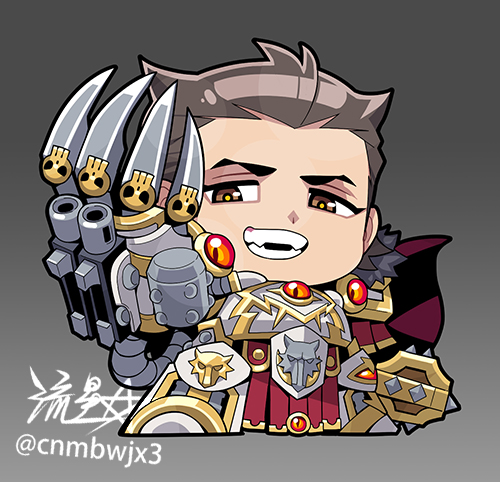 adeptus_astartes armor artist_name cape chaos_space_marine chibi chibi_only claw_(weapon) fangs genderswap genderswap_(mtf) gradient_background horus_lupercal lowres power_armor primarch ryuusei_(mark_ii) short_hair sons_of_horus tagme warhammer_40k weapon