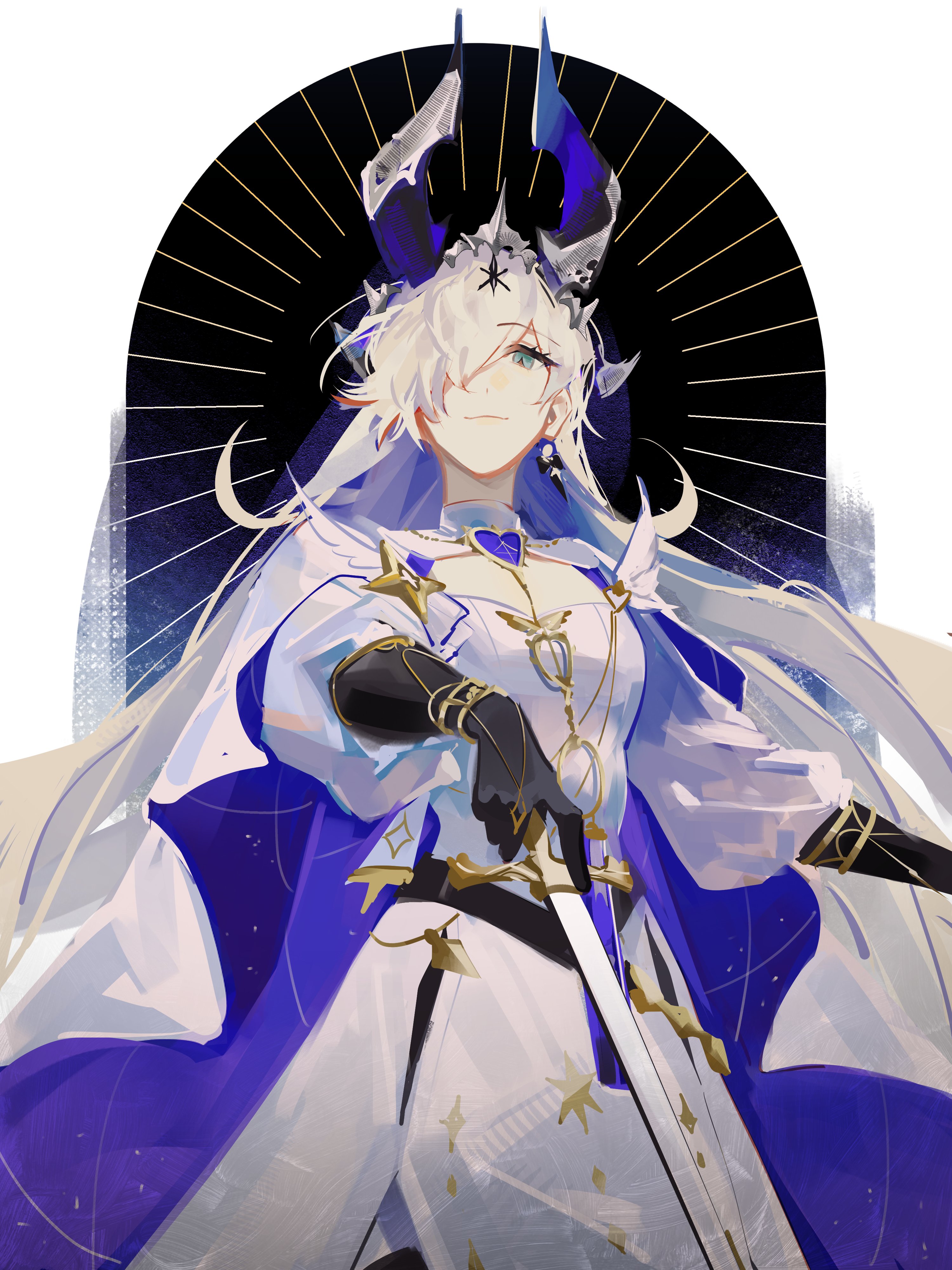 &{ID:13795628 CreatedAt:Sun Apr 05 06:15:29 -0500 2026 Score:2 Width:3000 Height:4000 MD5:dae47bda55089ea19671edffca9d2f78 Directory:da/e4 Image:dae47bda55089ea19671edffca9d2f78.jpg Rating:general Source:https://x.com/ylceon/status/2038613564014145783 Change:1775387730 Owner:danbooru CreatorID:6498 ParentID:0 Sample:1 PreviewHeight:350 PreviewWidth:262 Tags:1girl absurdres ambience_synesthesia arknights black_gloves blonde_hair blue_horns cape cleavage_cutout clothing_cutout cowboy_shot crown dragon_horns dress earrings elbow_gloves gloves green_eyes hair_over_one_eye highres holding holding_sword holding_weapon horns jewelry knighting long_hair necrass_(arknights) necrass_(as_clear_as_crystal)_(arknights) purple_cape single_earring smile solo sword two-sided_cape two-sided_fabric weapon white_cape white_dress ylceon Title: HasNotes:false HasComments:false FileURL:https://img2.gelbooru.com/images/da/e4/dae47bda55089ea19671edffca9d2f78.jpg PreviewURL:https://gelbooru.com/thumbnails/da/e4/thumbnail_dae47bda55089ea19671edffca9d2f78.jpg SampleURL:https://img2.gelbooru.com/samples/da/e4/sample_dae47bda55089ea19671edffca9d2f78.jpg SampleHeight:1133 SampleWidth:850 Status:active PostLocked:0 HasChildren:false IsVideo:false DisplayDate:05.04.2026 06:15}