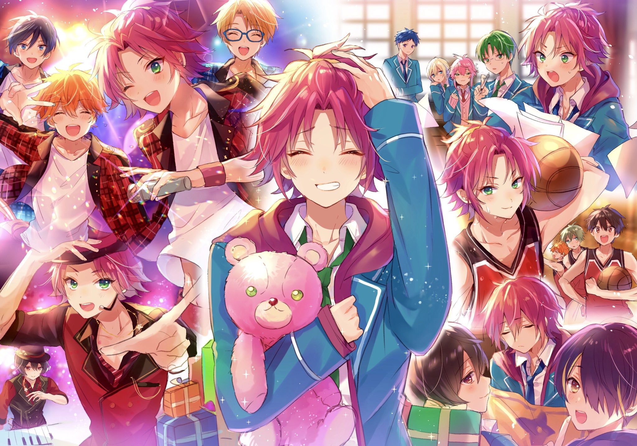 6+boys :d akehoshi_subaru arm_up ball bangs_pinned_back basketball_(object) black_hair black_hat black_jacket black_shirt blazer blonde_hair blonde_streaks blue-framed_eyewear blue_eyes blue_hair blue_jacket blue_necktie blush closed_eyes closed_mouth commentary_request ensemble_stars! facing_viewer finger_to_mouth floating_clothes flying_paper fushimi_yuzuru gift glasses green_eyes green_necktie grin hair_between_eyes hair_down hair_over_one_eye hand_on_own_head hasumi_keito hat headset hidaka_hokuto highres himemiya_tori holding holding_ball holding_microphone holding_paper holding_pen holding_stuffed_toy hood hood_down hooded_jacket idol_clothes instrument isara_mao jacket jersey long_sleeves looking_at_viewer looking_back male_focus microphone morisawa_chiaki multicolored_hair multiple_boys multiple_views necktie one_eye_closed one_eye_covered open_mouth orange_hair paper pen pink_hair plaid_clothes plaid_jacket pointing pointing_at_viewer purple_hair raised_inner_eyebrows red_eyes red_hair red_jacket red_necktie red_vest sakuma_ritsu school_uniform sengoku_shinobu shirt short_hair shushing sleeping small_sweatdrop smile sparkle streaked_hair striped_clothes striped_necktie stuffed_animal stuffed_toy sweat synthesizer takamine_midori tamano_mayo teddy_bear tenshouin_eichi trickstar_(ensemble_stars!) v-shaped_eyebrows vest w white_shirt wristband yellow_eyes yumenosaki_school_uniform yuuki_makoto_(ensemble_stars!)