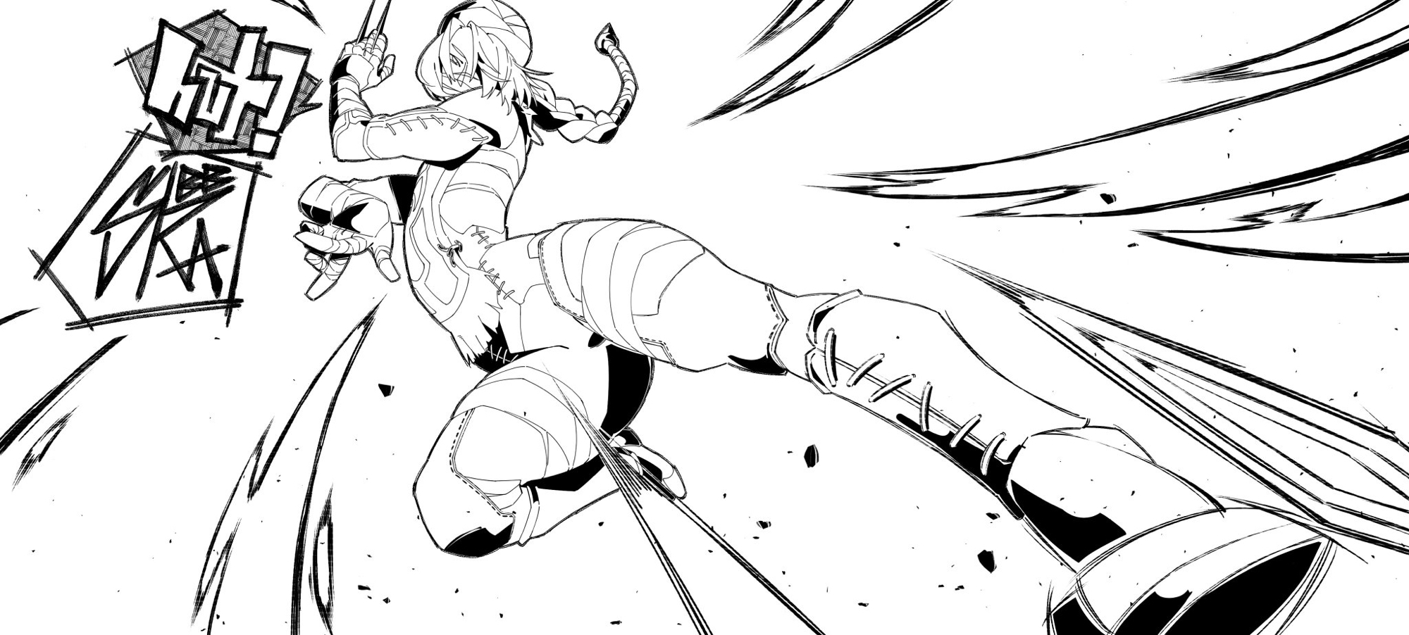 1girl bandages braid commentary english_commentary gloves greyscale highres long_hair mask monochrome motion_lines nintendo reverse_trap scribbora sheik solo speed_lines the_legend_of_zelda weapon