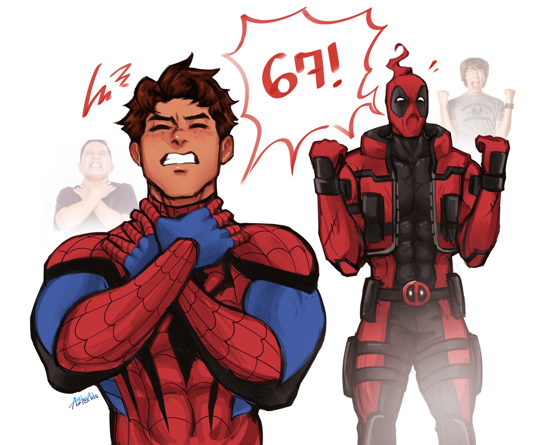 &{ID:13819370 CreatedAt:Wed Apr 08 13:31:15 -0500 2026 Score:3 Width:2048 Height:1707 MD5:642b68f7f8e870e58eca03526c4b083f Directory:64/2b Image:642b68f7f8e870e58eca03526c4b083f.jpg Rating:general Source:https://x.com/AztexArts/status/2012560898792006062 Change:1775673075 Owner:danbooru CreatorID:6498 ParentID:0 Sample:1 PreviewHeight:291 PreviewWidth:350 Tags:2boys 67_(meme) artist_name aztexarts belt belt_pouch black_bodysuit blue_bodysuit blush bodysuit brown_hair clenched_hands clenched_teeth closed_eyes commentary covered_abs covered_collarbone cropped_jacket deadpool deadpool_(series) english_commentary freckles hands_on_own_neck hands_up highres holster jacket male_focus marvel marvel_rivals mask meme multicolored_bodysuit multiple_boys notice_lines open_clothes open_jacket pectorals peter_parker photo_inset pouch red_bodysuit red_jacket reference_inset short_hair signature simple_background speech_bubble spider-man spider-man_(original_suit) spider-man_(series) spider_web_print superhero_costume teeth thigh_holster thigh_strap upper_body white_background Title: HasNotes:false HasComments:false FileURL:https://img2.gelbooru.com/images/64/2b/642b68f7f8e870e58eca03526c4b083f.jpg PreviewURL:https://gelbooru.com/thumbnails/64/2b/thumbnail_642b68f7f8e870e58eca03526c4b083f.jpg SampleURL:https://img2.gelbooru.com/samples/64/2b/sample_642b68f7f8e870e58eca03526c4b083f.jpg SampleHeight:708 SampleWidth:850 Status:active PostLocked:0 HasChildren:false IsVideo:false DisplayDate:08.04.2026 13:31}