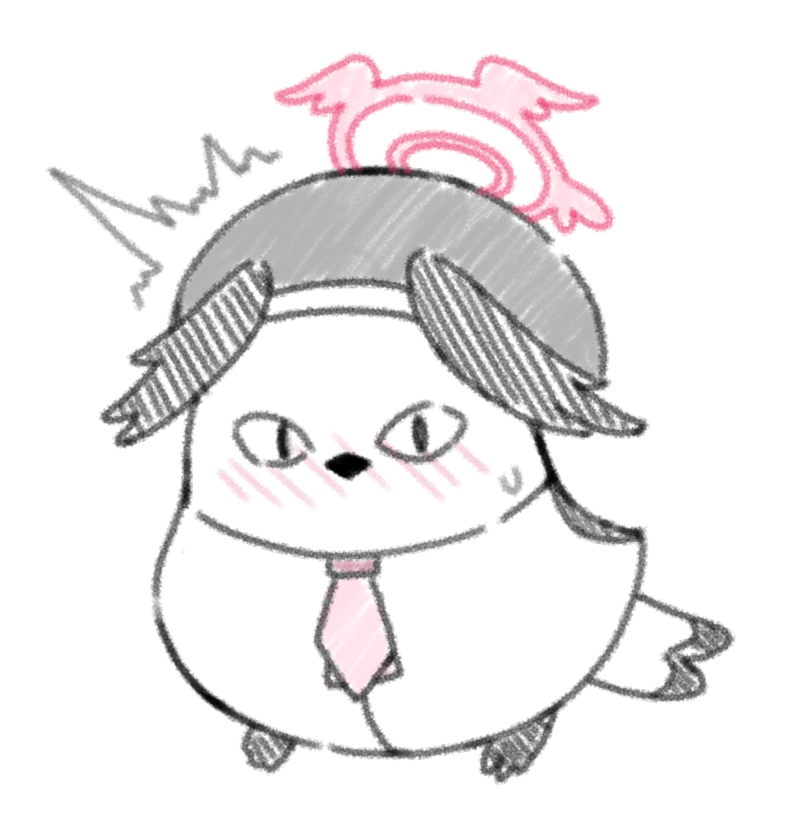 <|>_<|> ^^^ animal_focus animalization beret bird black_hat black_wings blue_archive blush commentary_request embarrassed full_body halo hat head_wings highres kaorun_(momiji_hourensou) koharu_(blue_archive) long-tailed_tit looking_at_viewer necktie no_humans nose_blush partial_commentary pink_halo pink_necktie simple_background sketch sweatdrop tit_(bird) white_background winged_halo wings