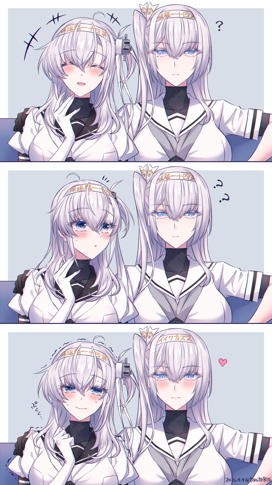 &{ID:13825335 CreatedAt:Thu Apr 09 11:45:46 -0500 2026 Score:0 Width:1123 Height:2000 MD5:b0c1e1fa0ae7bb08fa057792e0d853b3 Directory:b0/c1 Image:b0c1e1fa0ae7bb08fa057792e0d853b3.jpg Rating:general Source:https://x.com/torute810/status/2042217725435740640 Change:1775753146 Owner:danbooru CreatorID:6498 ParentID:0 Sample:1 PreviewHeight:350 PreviewWidth:196 Tags:2girls ? black_gloves black_sailor_collar blush breasts commentary_request fuyutsuki_(kancolle) gloves grey_eyes grey_hair hand_on_another's_shoulder headband highres kabocha_torute kantai_collection large_breasts looking_at_viewer multiple_girls nose_blush one_side_up sail sailor_collar shirt smile suzutsuki_(kancolle) undershirt upper_body white_gloves white_headband white_sailor_collar white_shirt Title: HasNotes:false HasComments:false FileURL:https://img2.gelbooru.com/images/b0/c1/b0c1e1fa0ae7bb08fa057792e0d853b3.jpg PreviewURL:https://gelbooru.com/thumbnails/b0/c1/thumbnail_b0c1e1fa0ae7bb08fa057792e0d853b3.jpg SampleURL:https://img2.gelbooru.com/samples/b0/c1/sample_b0c1e1fa0ae7bb08fa057792e0d853b3.jpg SampleHeight:1514 SampleWidth:850 Status:active PostLocked:0 HasChildren:false IsVideo:false DisplayDate:09.04.2026 11:45}