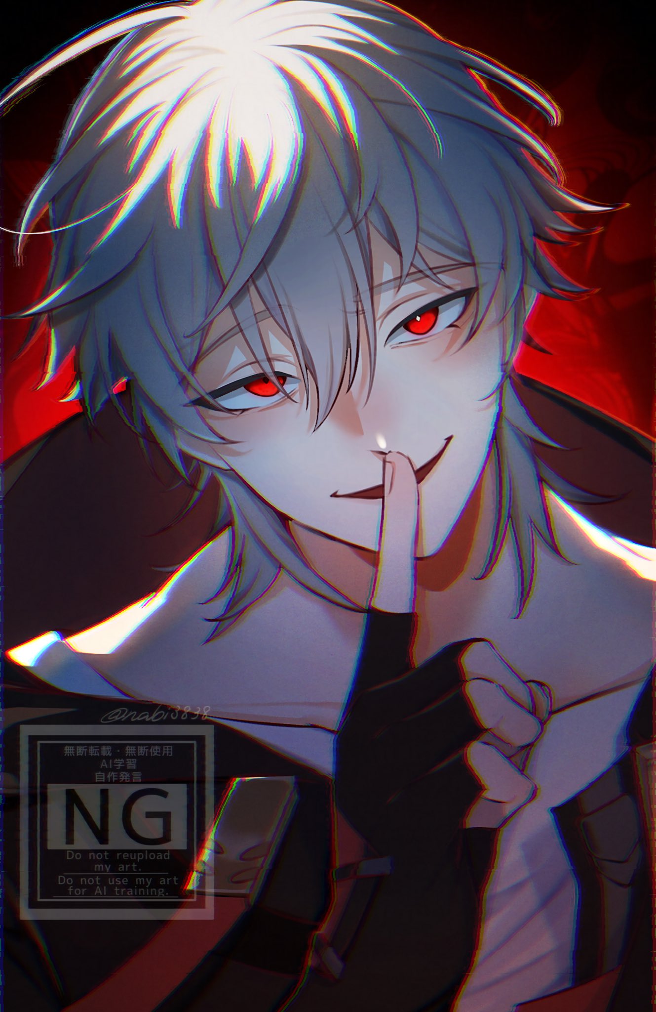 &{ID:13832854 CreatedAt:Fri Apr 10 13:45:12 -0500 2026 Score:0 Width:1329 Height:2048 MD5:1a8dde3e9d58fa8a41a5594496397046 Directory:1a/8d Image:1a8dde3e9d58fa8a41a5594496397046.jpg Rating:general Source:https://x.com/nabi3838/status/2042558345438203943 Change:1775846712 Owner:danbooru CreatorID:6498 ParentID:0 Sample:1 PreviewHeight:350 PreviewWidth:227 Tags:1boy artist_name backlighting black_gloves black_jacket bright_pupils caelus_(honkai:_star_rail) caelus_(vim_and_vigor)_(honkai:_star_rail) chromatic_aberration collarbone commentary cropped_torso dark_persona empty_eyes fingerless_gloves fingernails gloves grey_hair hair_between_eyes hand_up highres honkai:_star_rail honkai_(series) hood hooded_jacket index_finger_raised jacket looking_at_viewer male_focus mask nabi3838 official_alternate_costume open_clothes open_jacket open_mouth red_background red_eyes red_jacket shirt short_hair smile solo t-shirt trailblazer_(honkai:_star_rail) two-sided_fabric two-sided_jacket untranslatable_commentary watermark white_pupils white_shirt Title: HasNotes:false HasComments:false FileURL:https://img2.gelbooru.com/images/1a/8d/1a8dde3e9d58fa8a41a5594496397046.jpg PreviewURL:https://gelbooru.com/thumbnails/1a/8d/thumbnail_1a8dde3e9d58fa8a41a5594496397046.jpg SampleURL:https://img2.gelbooru.com/samples/1a/8d/sample_1a8dde3e9d58fa8a41a5594496397046.jpg SampleHeight:1310 SampleWidth:850 Status:active PostLocked:0 HasChildren:false IsVideo:false DisplayDate:10.04.2026 13:45}