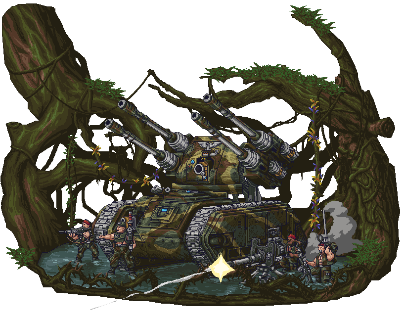 4boys animated animated_gif anti-aircraft anti-aircraft_gun astra_militarum autocannon bandana body_armor camouflage camouflage_pants cannon caterpillar_tracks commentary english_commentary field_radio firing forest gun helmet holding holding_gun holding_weapon lasgun military_vehicle motor_vehicle multiple_boys muscular muscular_male nature pants pixel_art red_bandana rifle science_fiction soldier steel_joe tank tank_turret wading warhammer_40k water weapon woodland_camouflage