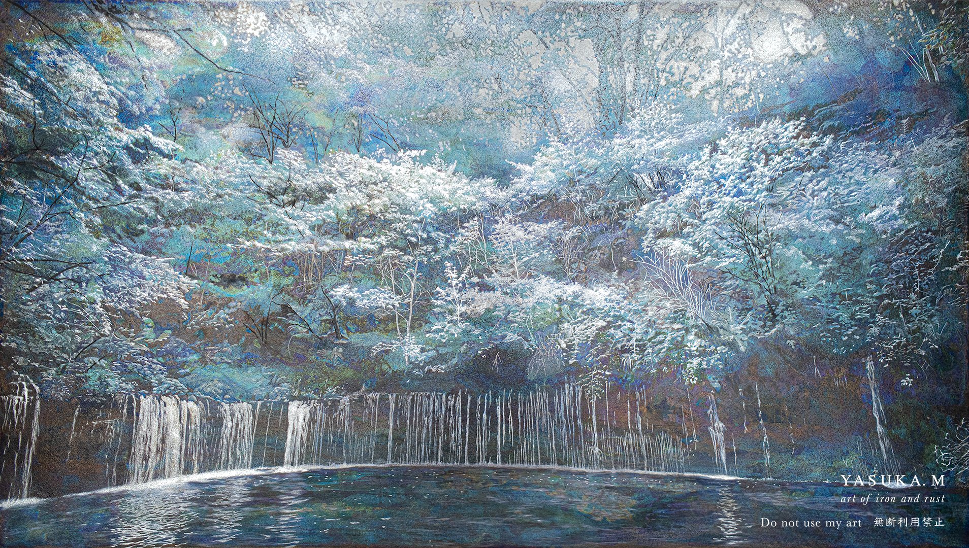 artist_name commentary_request highres nature original scenery sunlight tree water waterfall yasuka_martwork