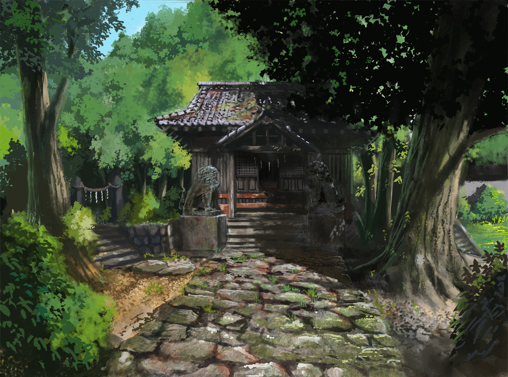 bad_id bad_pixiv_id day grass komainu leaf matsura_ichirou nature no_humans original road rope scenery shadow shide shimenawa shrine sky statue tree tree_shade