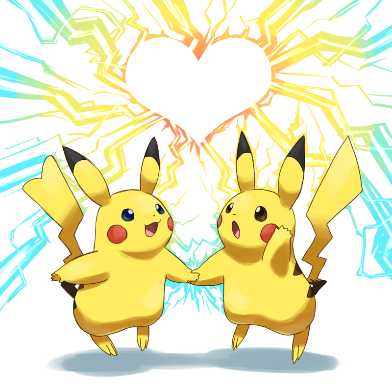 black_eyes blue_eyes electricity gen_1_pokemon good_frog heart nintendo no_humans pikachu pokemon pokemon_(creature) simple_background